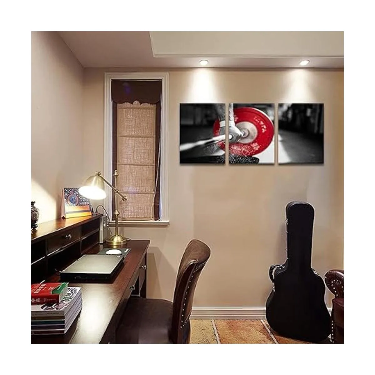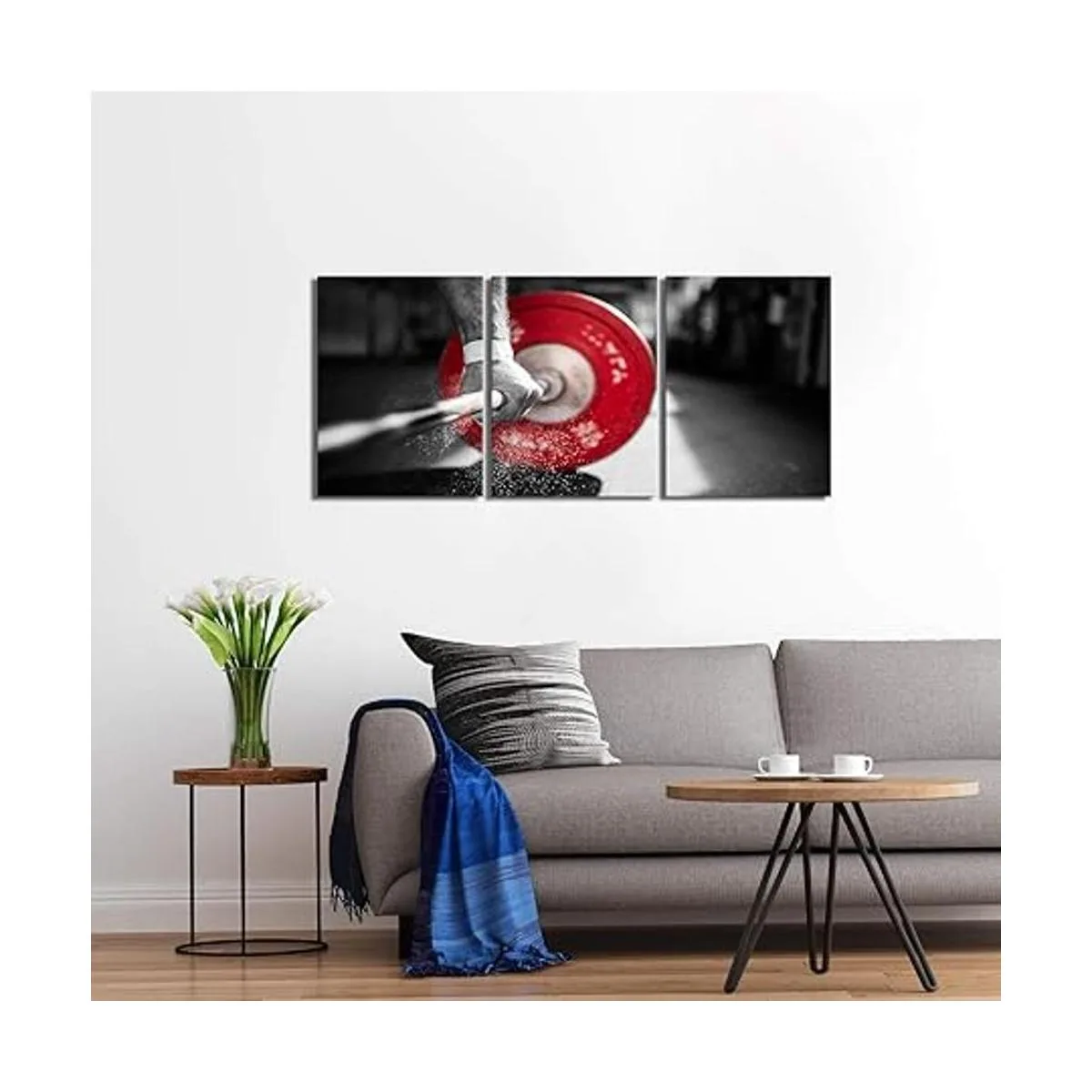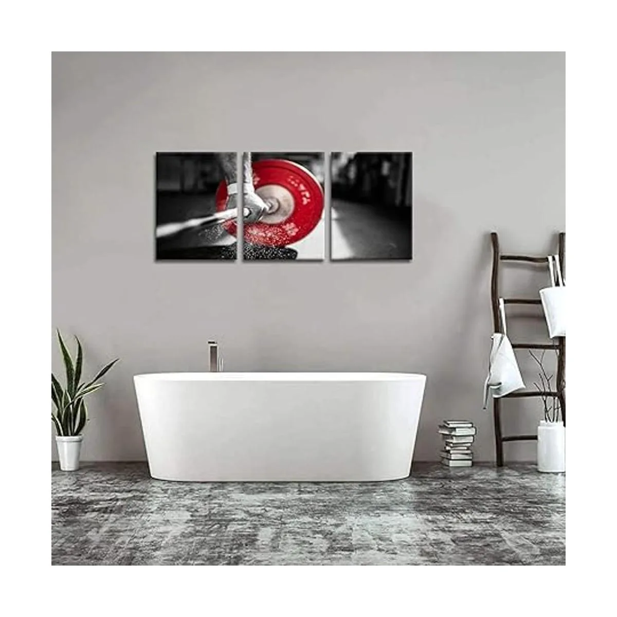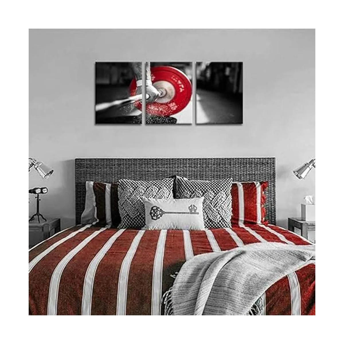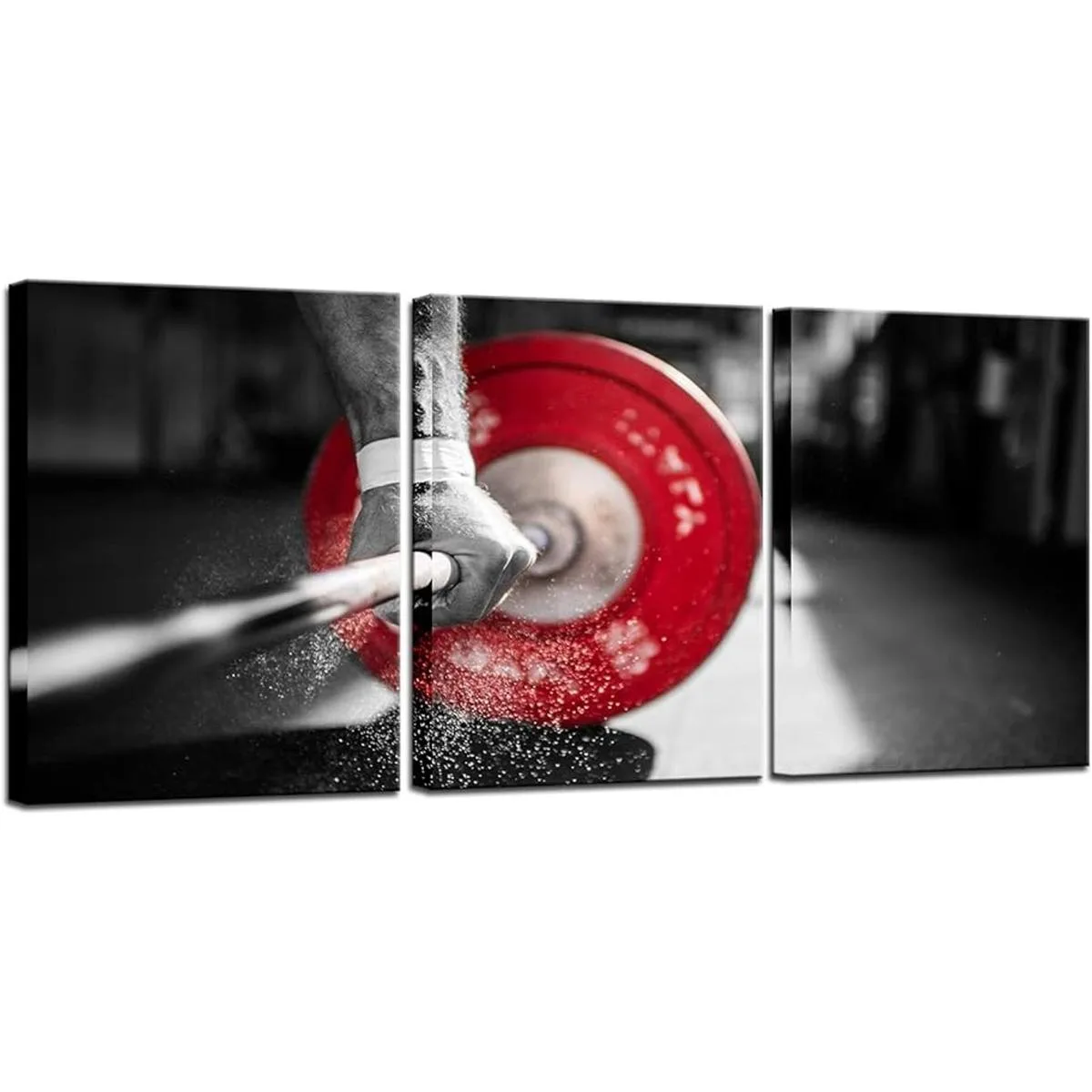 3 piezas de lienzo negro y rojo para levantamiento de pesas, arte de pared, pintura, gimnasio, entrenamiento, póster, impresiones en lienzo para dormitorio, cuarto de baño, estirado y enmarcado, fácil de colgar, 30,5 x 40,6 x 3 piezas