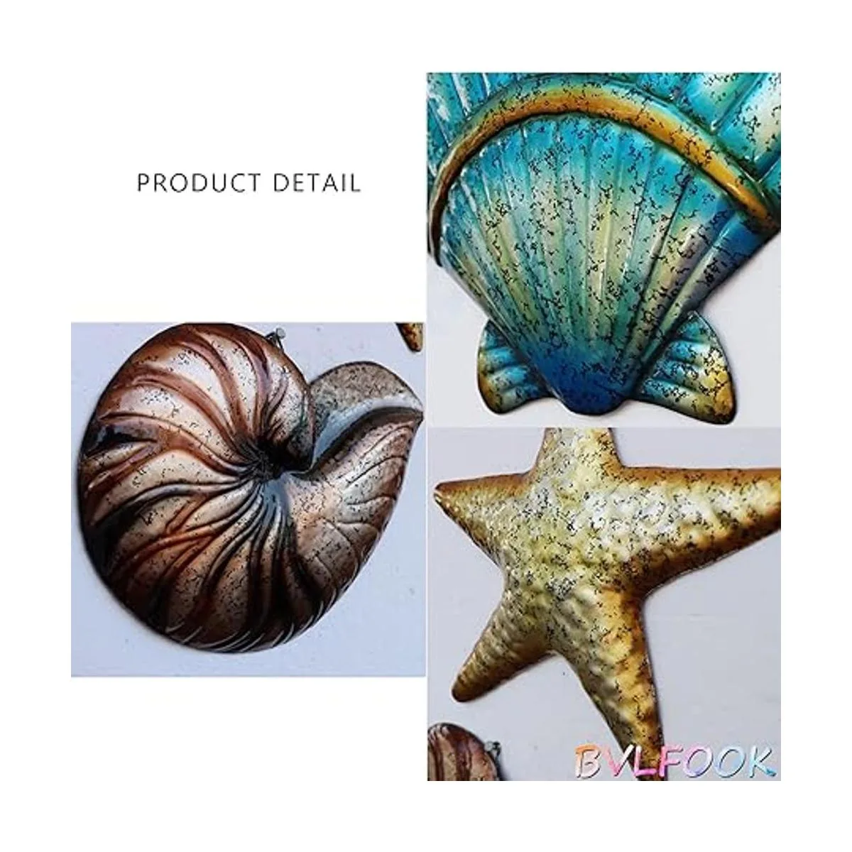 3 piezas de metal para decoración de pared de playa, concha de estrella de mar, decoración de metal con temática de océano, decoración de baño costera marina, arte de pared náutico para oficina, hogar, sala de estar, cuarto de niños