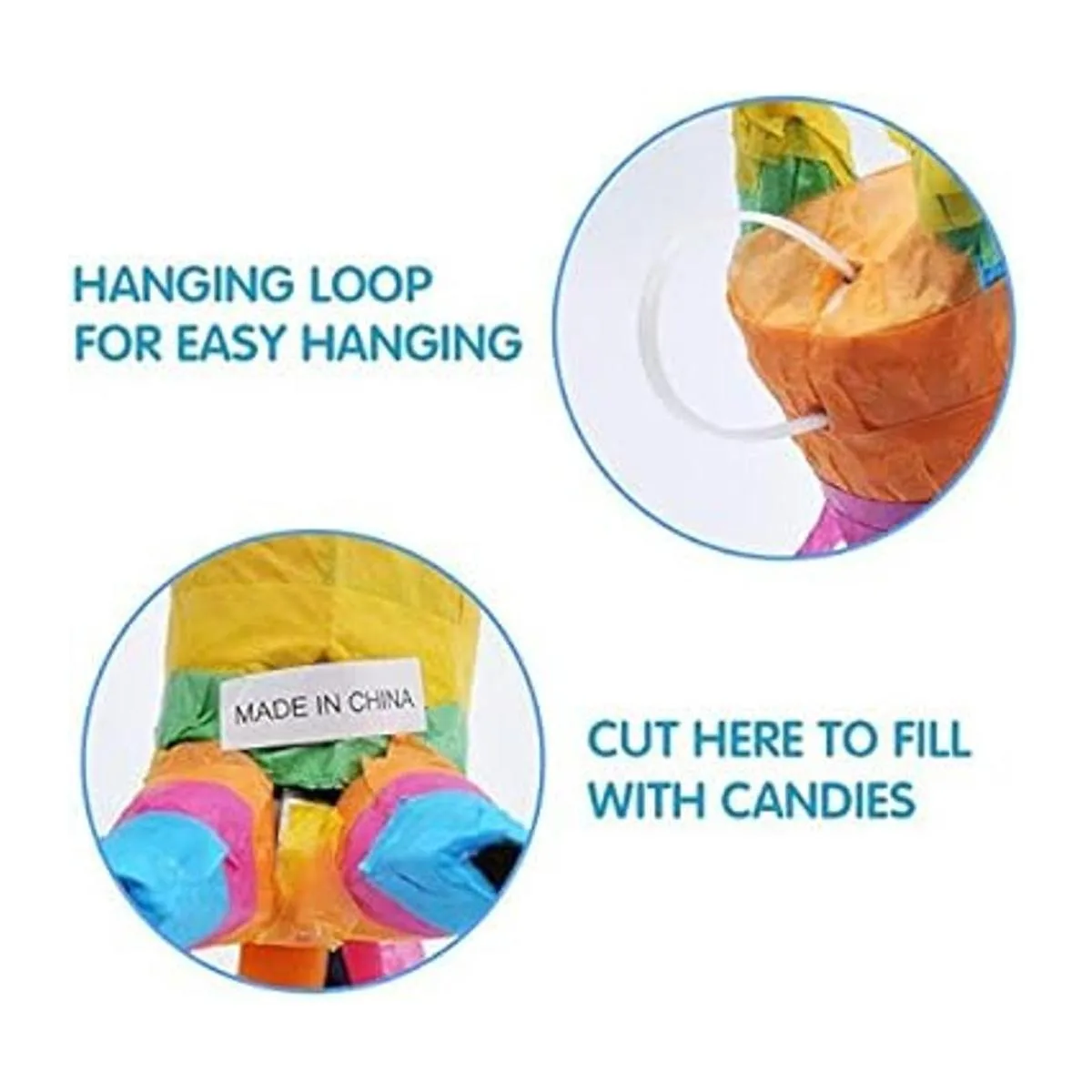 Calidad premium. Hecho de cartón y papel de seda, ecológico. Seguro para niños: no tóxico. Cumple con el estándar de juguetes de Estados Unidos. Prueba de seguridad aprobada. Cada piñata mide 4 x 7.5 x 2 pulgadas