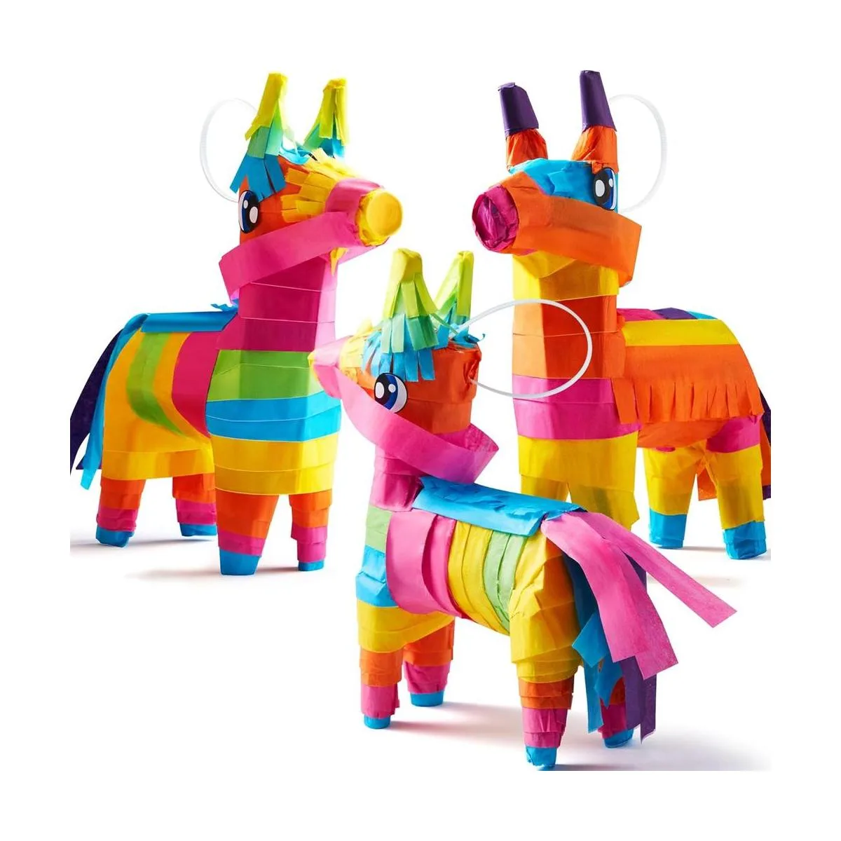 Juego completo. Paquete de 3 mini piñatas de burro que incluye dos colores diferentes, bucle para colgar fácilmente, un adhesivo detrás de la parte posterior para cortar para llenar con dulces