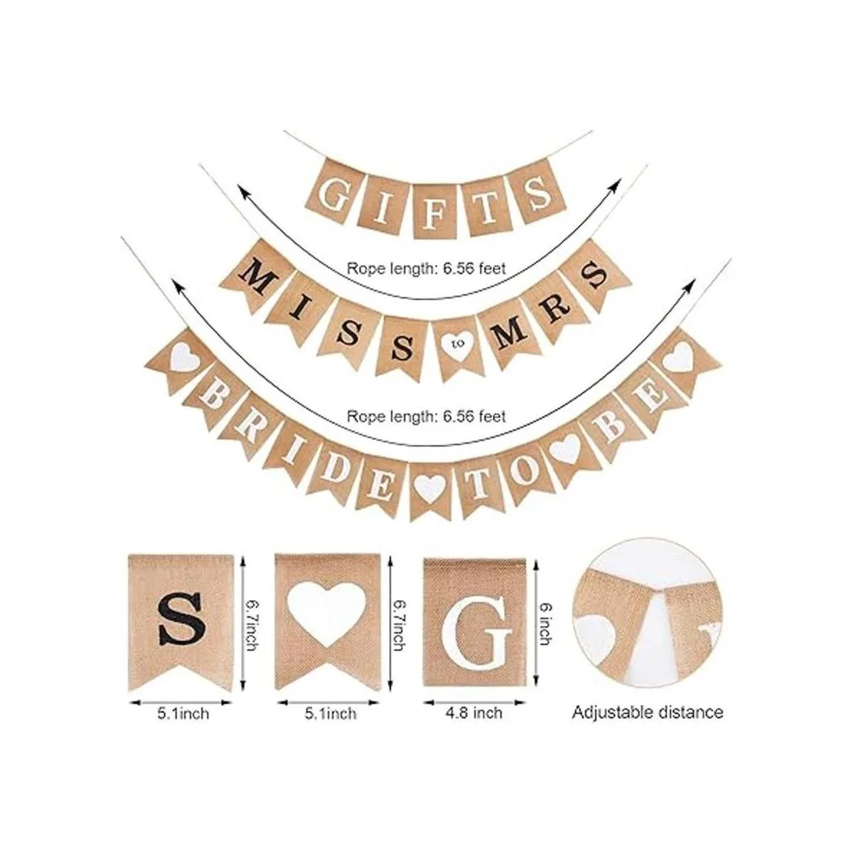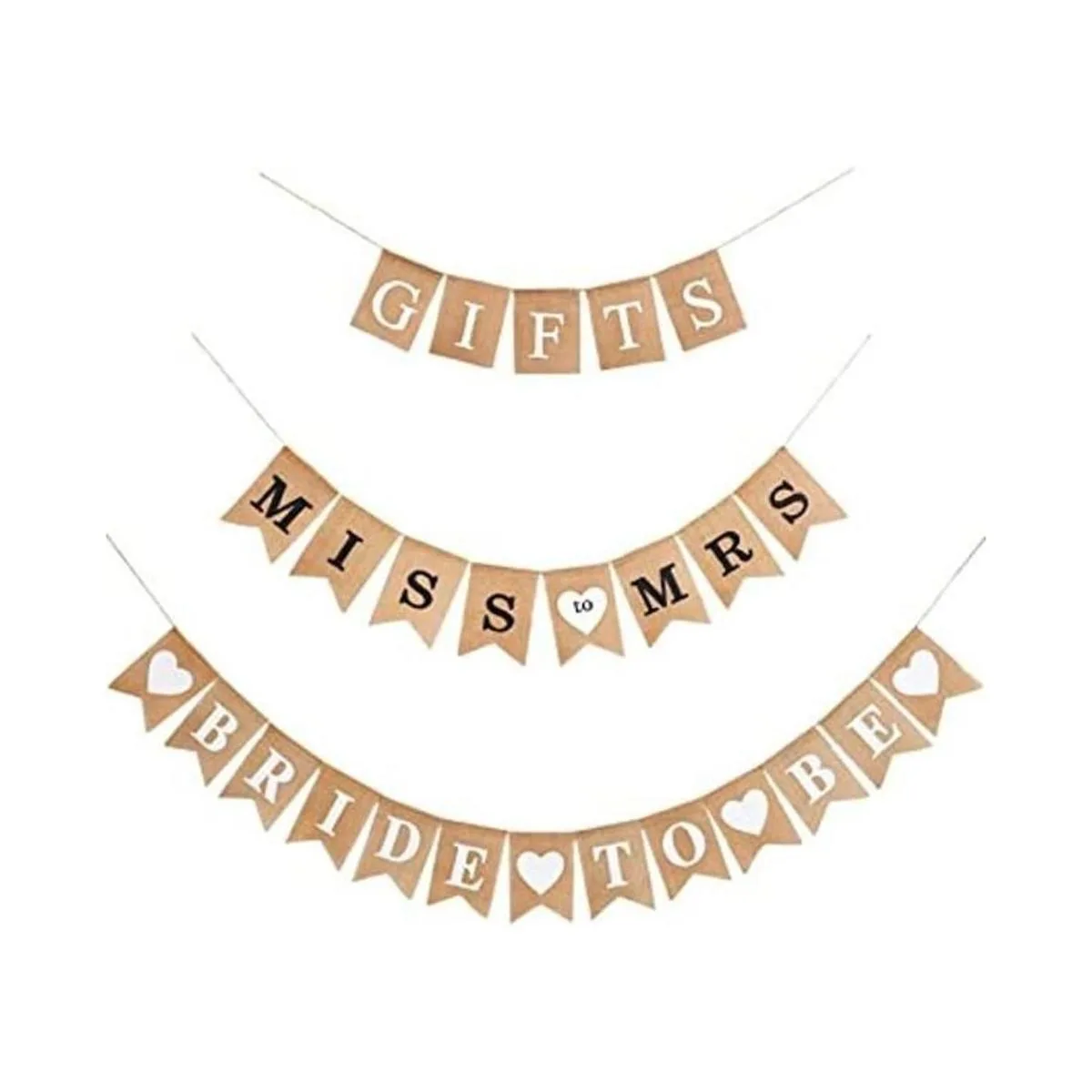 Contenido del paquete: viene con 3 banderas de arpillera para decoración de despedida de soltera en 3 estilos diferentes, puede satisfacer tus necesidades para decorar tu despedida de soltera