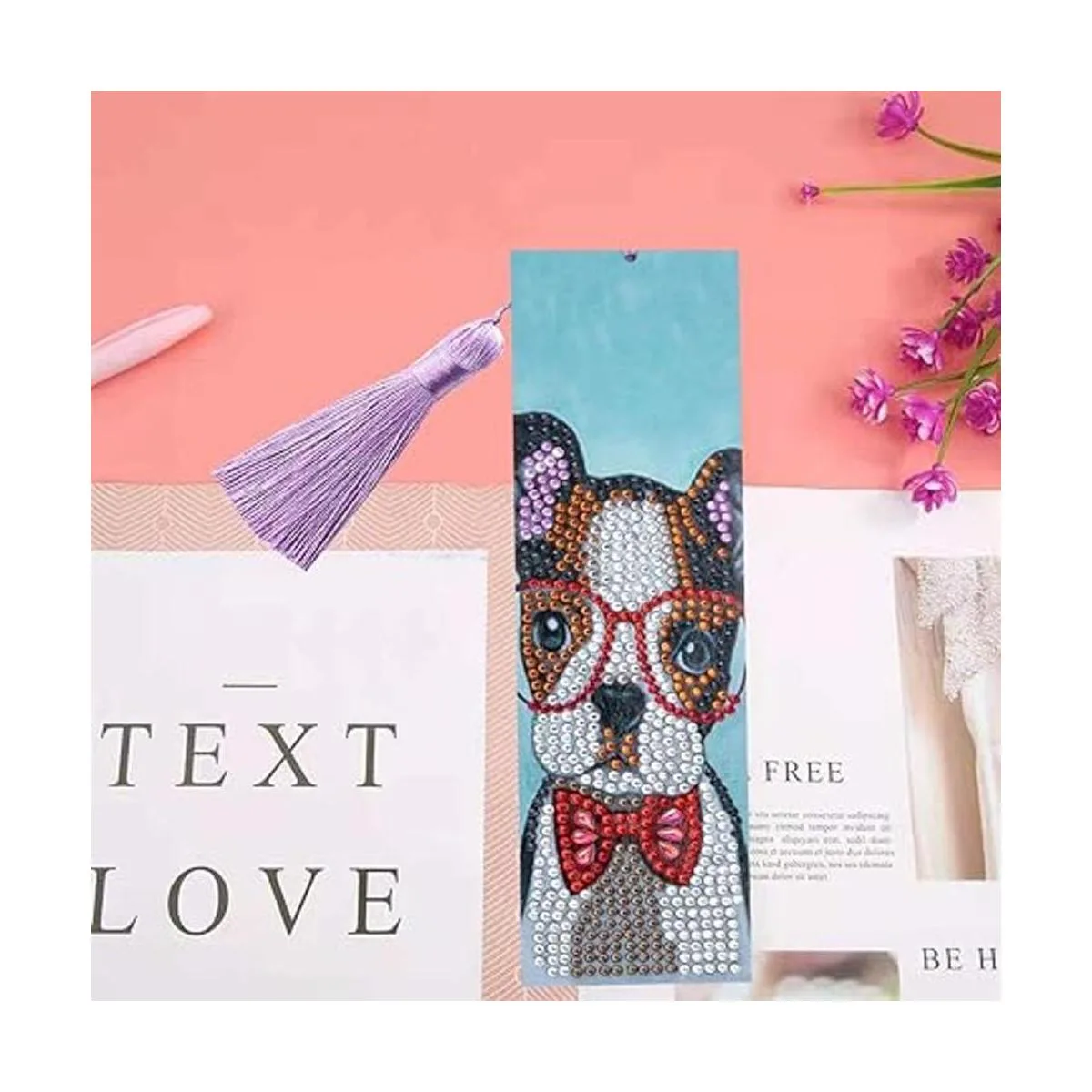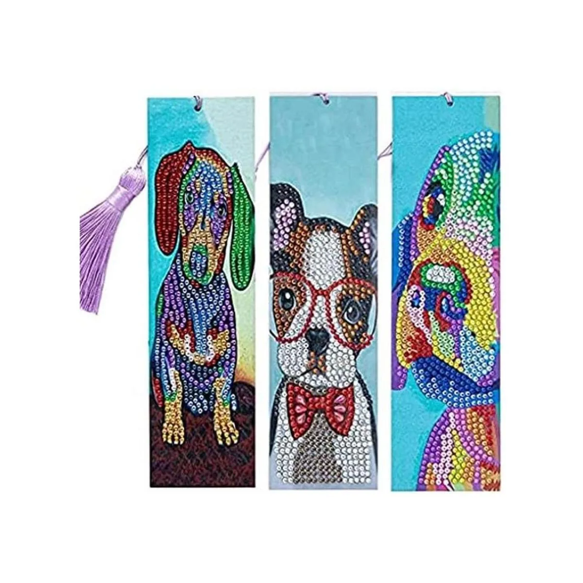 3 piezas de pintura de diamante kits de dibujos animados perro marcadores con borla DIY cuero marcapáginas arte arte arte arte arte 5D forma especial pintura de cristal por números para adultos niños estudiantes regalo 2.4 x 8.3 in