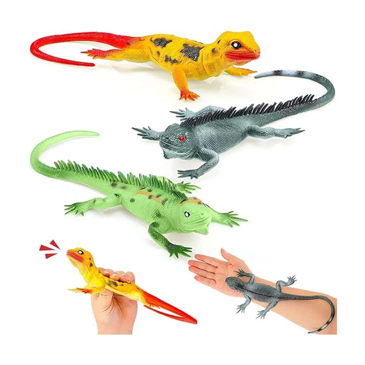 3 piezas de plástico lagarto juguetes de 15 pulgadas de plástico colorido falsos lagartos modelo artificial lagarto reptil lagarto hacer un sonido realista figuras de animales para la decoración de apoyo educativo favores de fiesta