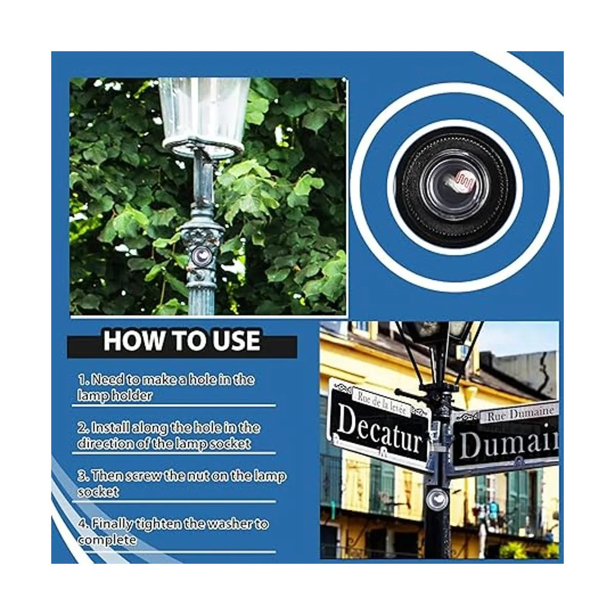 Fácil de instalar: el control de fotos puede funcionar con la mayoría de accesorios y bombillas para postes de lámpara al aire libre de cables duros, que se requieren un agujero de montaje inferior a 0.6 pulgadas de diámetro; desconecta la potencia, retira la cubierta de la caja de conexiones, coloca el interruptor de luz de fotocélula en el agujero de perforación y fíjalo con tuerca de bloqueo