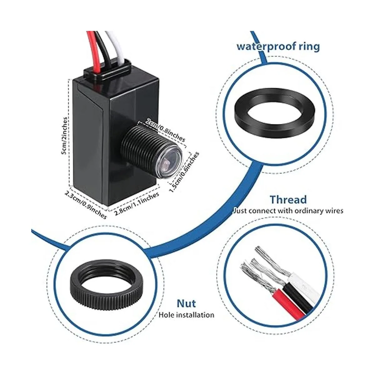 Diseño fotoeléctrico: el sensor de luz ocular fotográfico es fiable y de calidad, resistente a la intemperie y antioxidante, estable y seguro, se puede utilizar con confianza; interruptor fotosensible externo integrado, también se aplica como un pequeño interruptor fotoeléctrico de controlador de luz de calle a prueba de lluvia