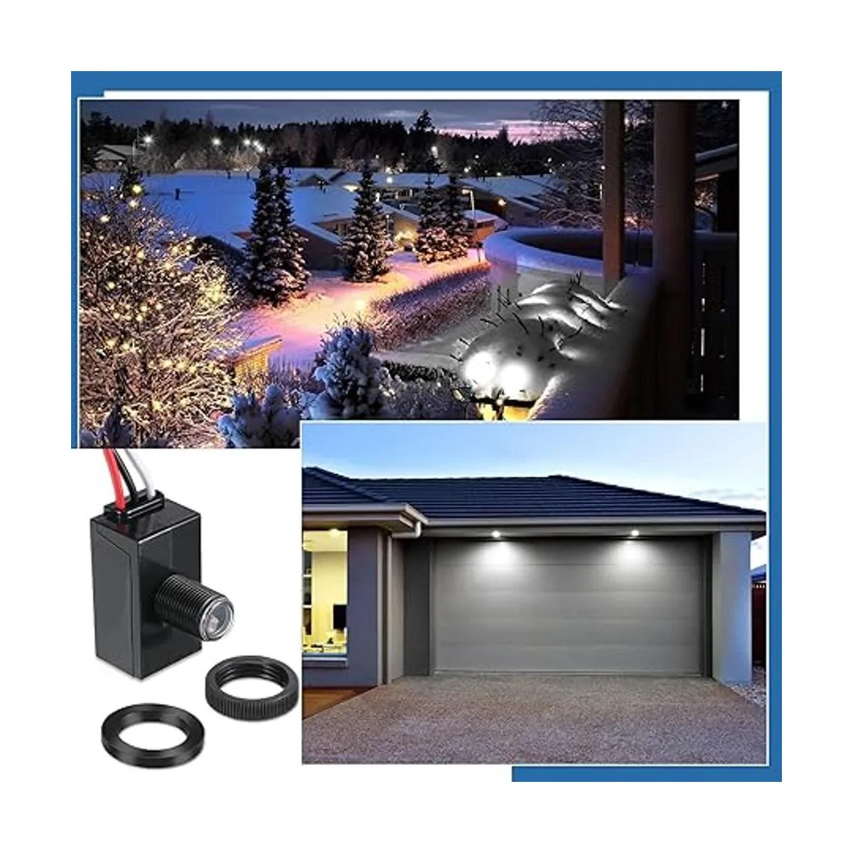 Diseño de detección inteligente: esta fotocélula con sensor de luz enciende tus luces exteriores al anochecer y al amanecer, controla automáticamente la iluminación de acuerdo con los niveles de iluminación ambiental; el diseño interno tiene un circuito automático de detección de nivel de luz ambiental que se apaga automáticamente durante el día y se enciende por la noche