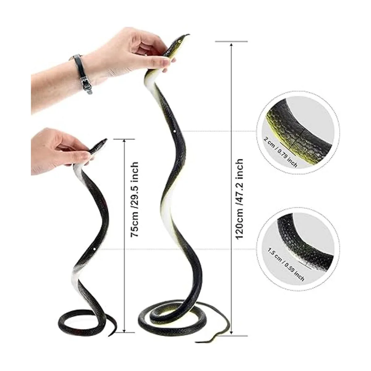 Paquete: recibirás 3 piezas de accesorios de serpiente de goma; incluye 2 tamaños diferentes y 3 colores diferentes serpientes de goma, las medidas son de aprox. 47.2 in y 29.5 in de largo no estirado