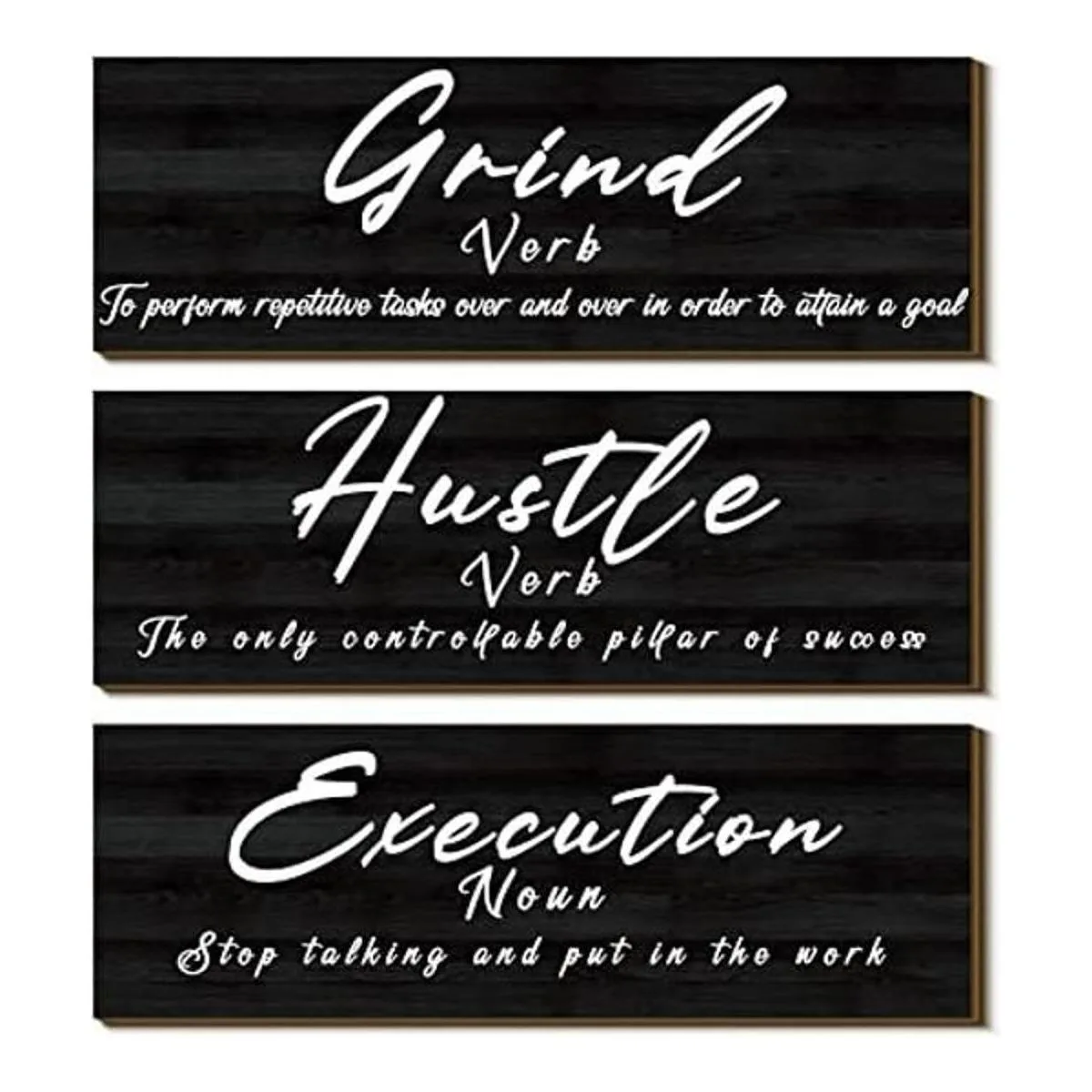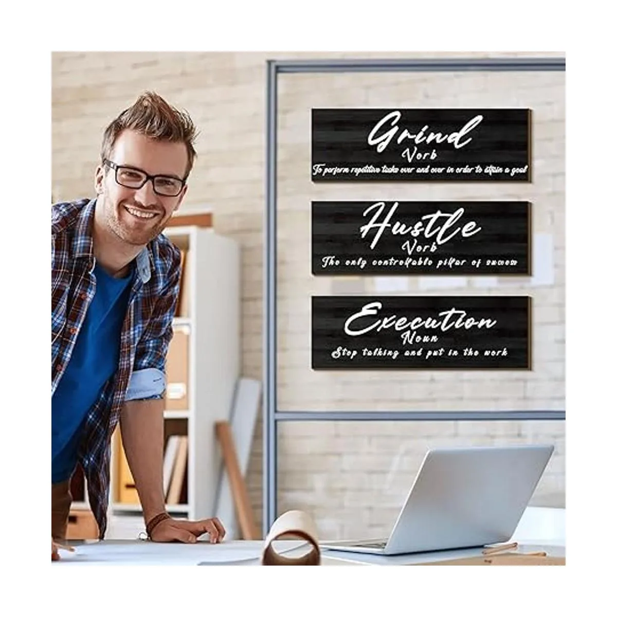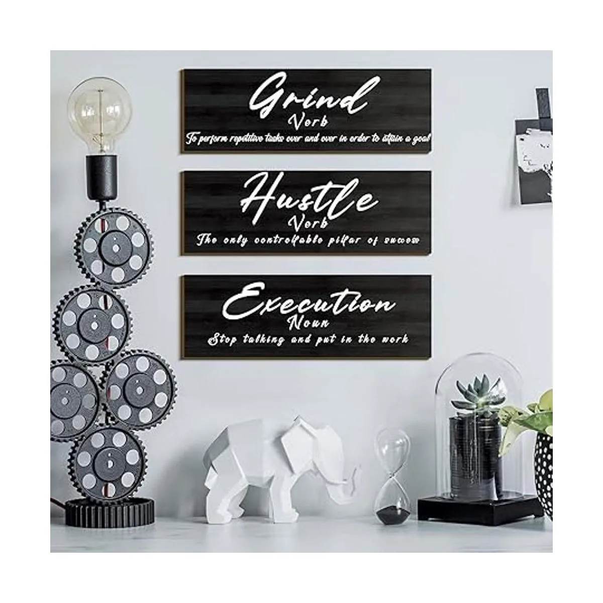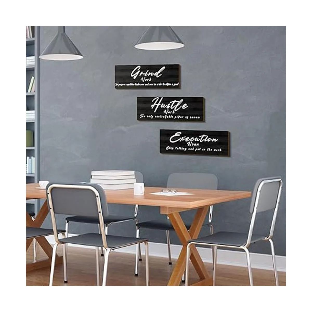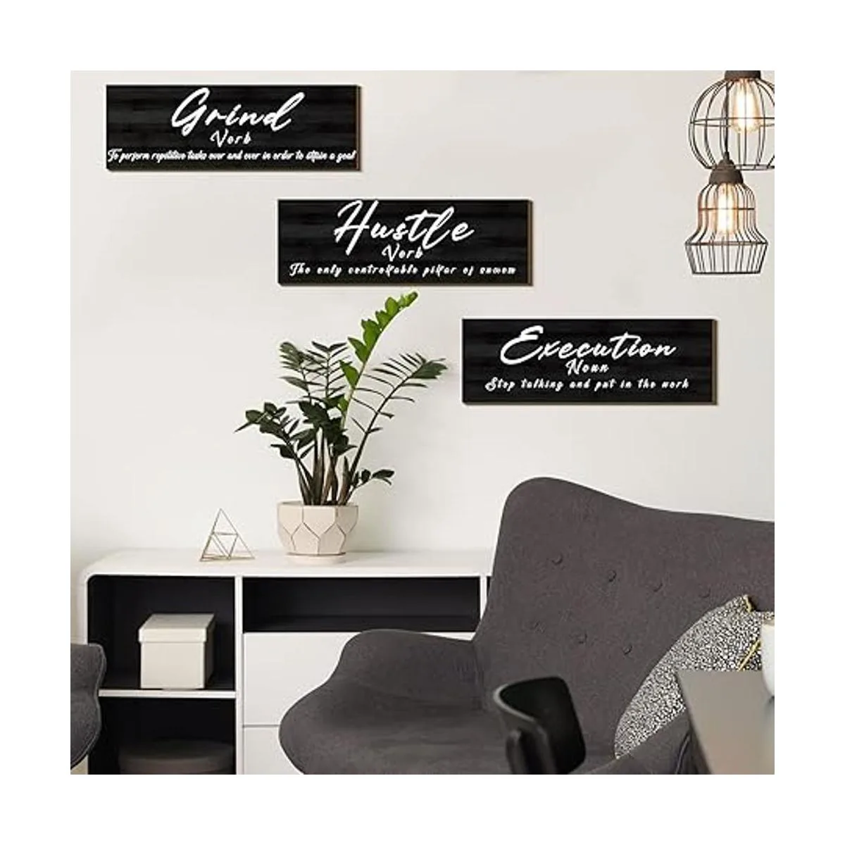 Arte de pared de madera: el arte de pared motivacional para el gimnasio está hecho de material de madera de calidad, que es sólido, fiable y seguro, no es fácil de romper. Y el arte de pared motivacional del gimnasio está impreso con palabras molidas, ejecución, ajetreo, etc., que es inspirador y positivo