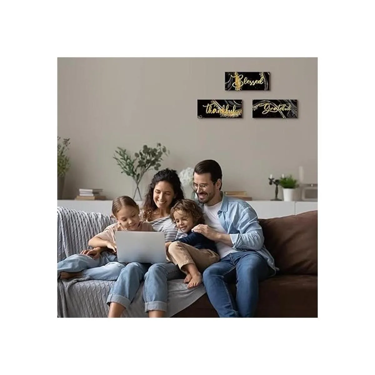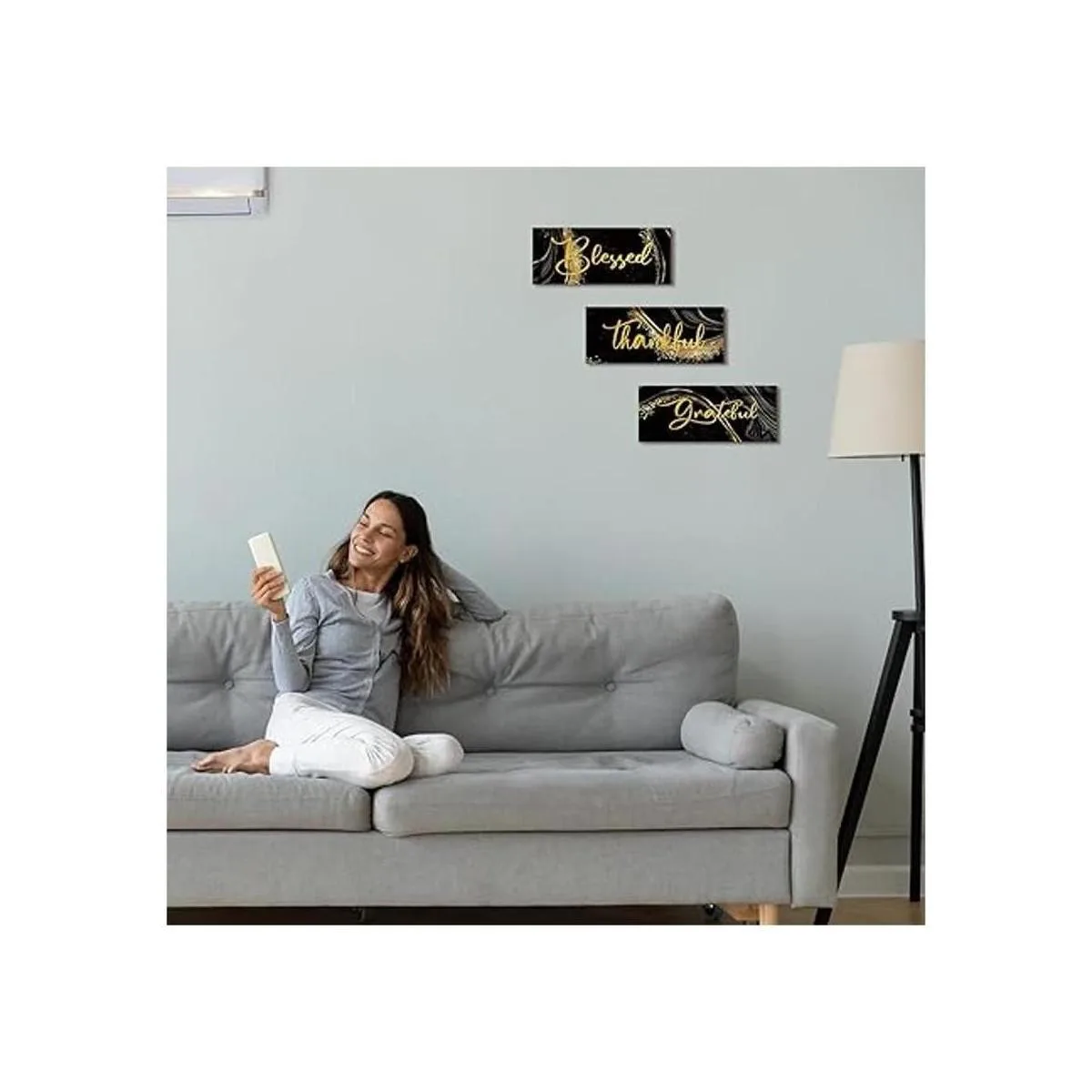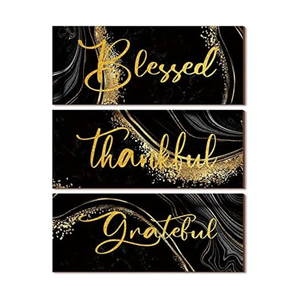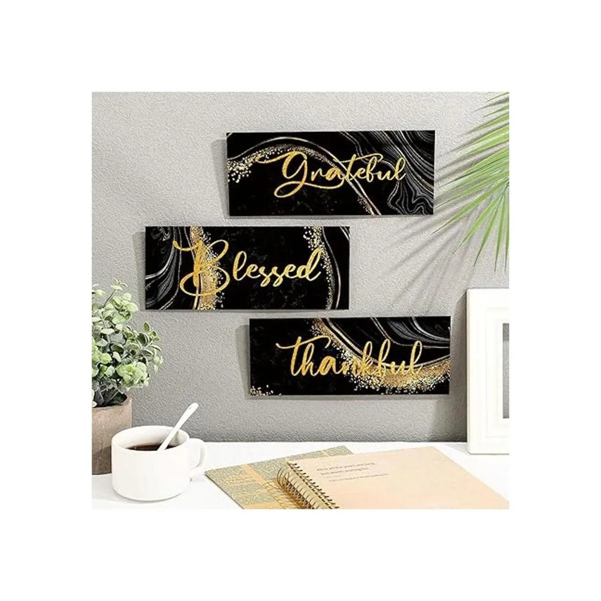 3 piezas Thankful Grateful Blessed Decoración de pared de estilo mármol abstracto, decoración de pared, arte moderno de madera para colgar en el hogar, sala de estar, dormitorio, oficina familiar estilo clásico