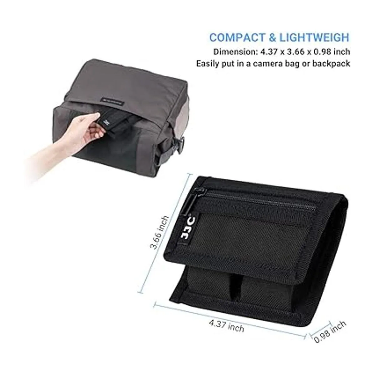 3 Pockets DSLR Battery and Memory Card Holder Pouch,Camera Battery and SD CF XQD Card Storage Case for AA Battery and LPE6 LPE10 LPE12 LPE17 ENEL14 ENEL15 NPFW50 NPF550 NPFZ100 Battery