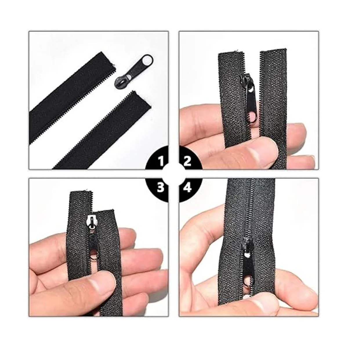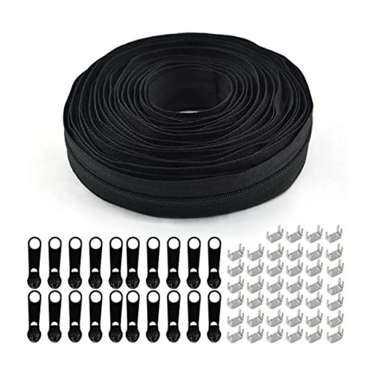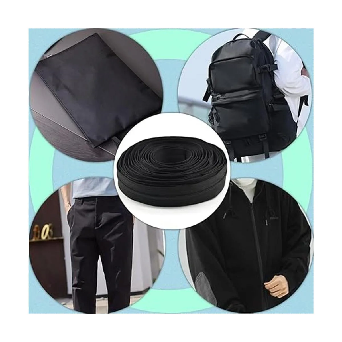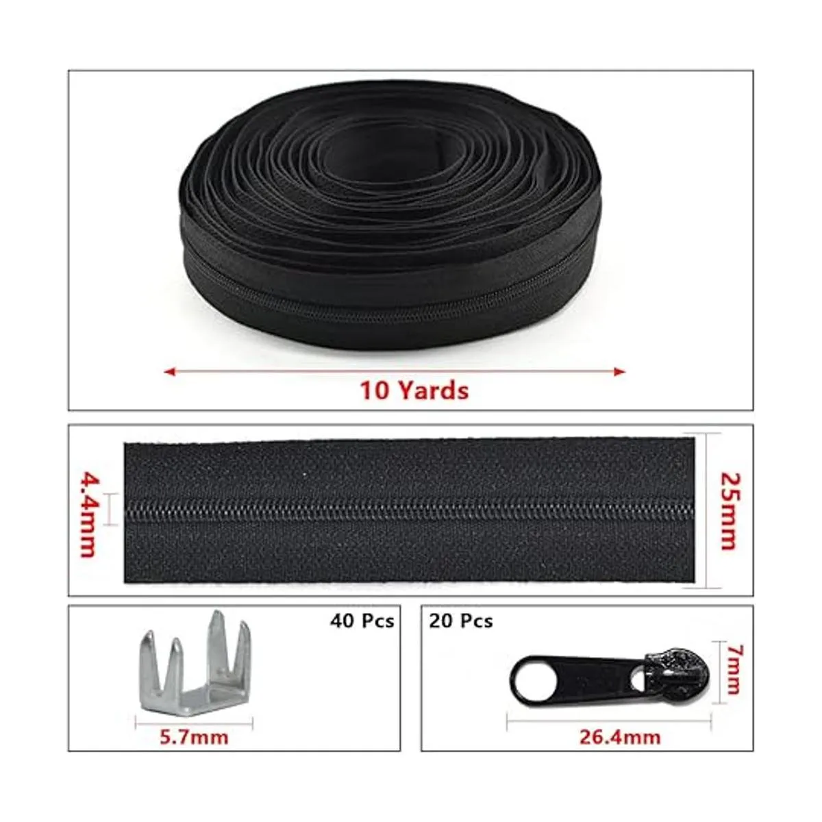 3 Rollo de cremallera de nailon de 10 yardas para coser bobina de nailon con 20 deslizadores negros y 30 cierres de cremallera para manualidades, costura, sastres negro10 yardas