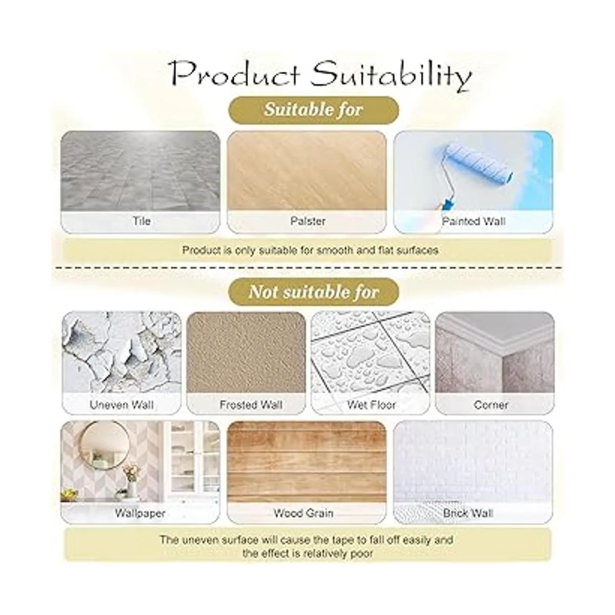 Lo suficientemente largo como para usar: el tamaño de cada cinta decorativa de pared es de aproximadamente 3/8 pulgadas de ancho y 55 yardas de largo; puedes cortar la longitud adecuada para satisfacer tus demandas, lo que es fácil de usar y se puede pegar directamente en paredes, suelos, armarios, puertas, azulejos, etc