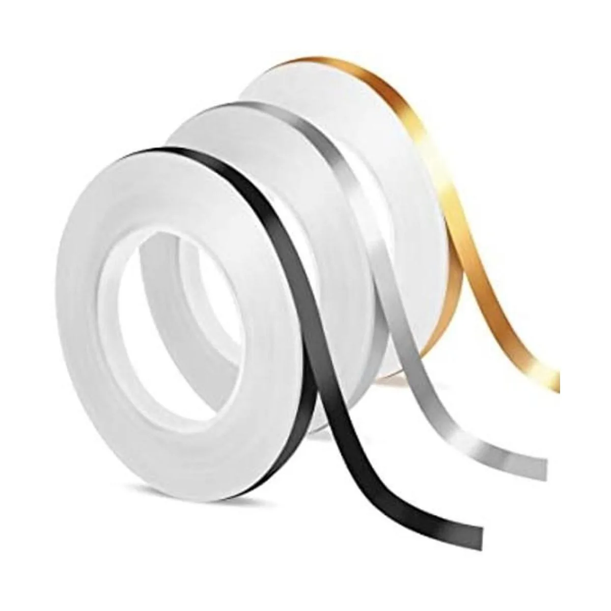 3 rollos de cinta de poliéster metalizado Mylar cinta adhesiva dorada Washi cinta metálica para borde de pared de color plateado, tiras reflectantes adhesivas negras, cinta de espejo para moldear, suministros de arte gráfico DIY