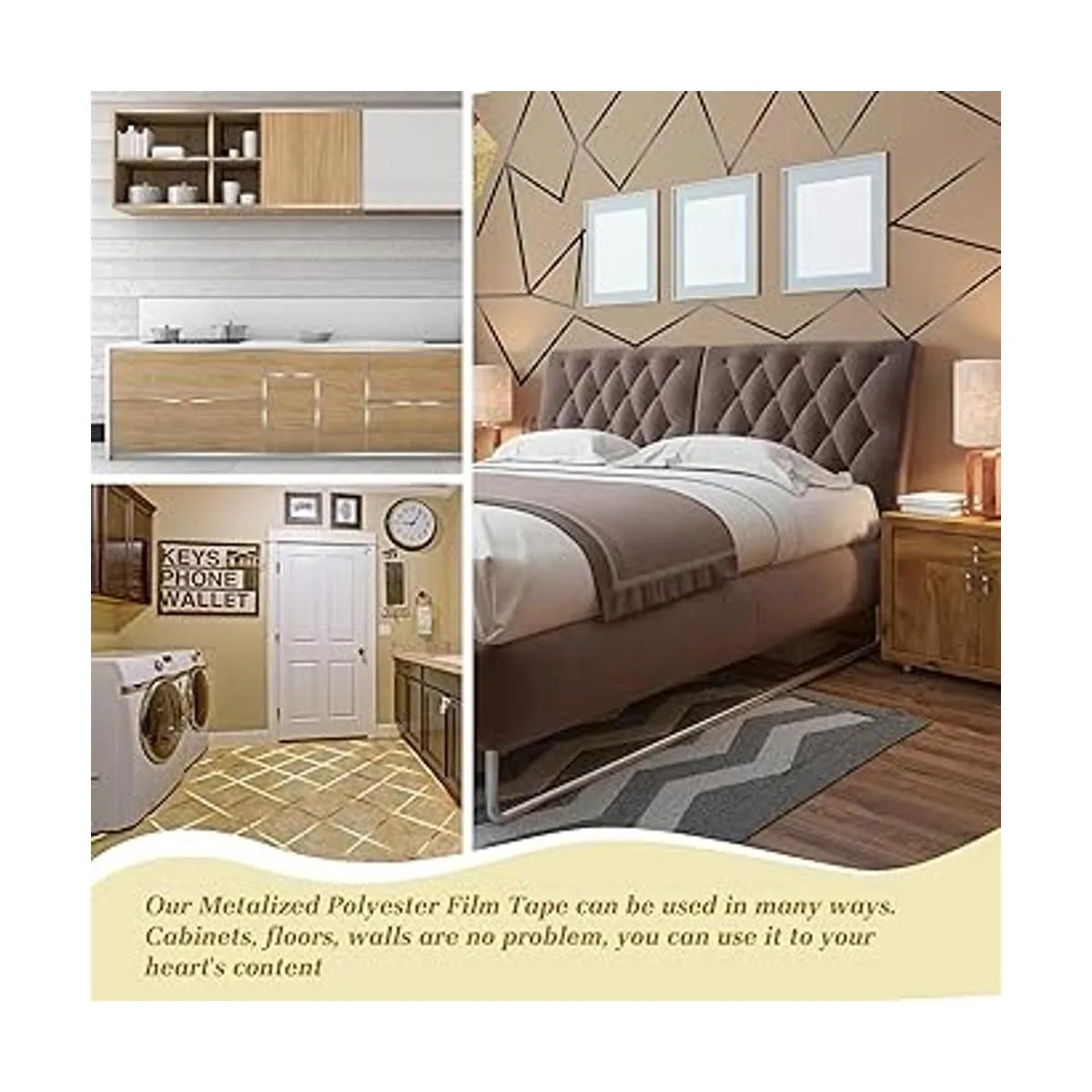 Aplicaciones versátiles: nuestra cinta adhesiva metálica es adecuada para decorar dormitorios, baños, cocinas, salas de estar, oficinas, restaurantes, fiestas, bodas, no solo para interiores, sino también para decoración de patio de jardín, por lo que puedes dar juego completo a tu imaginación para aplicarla