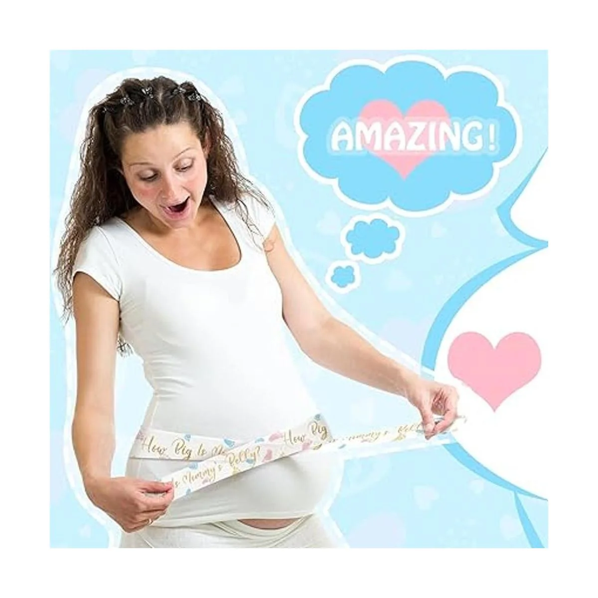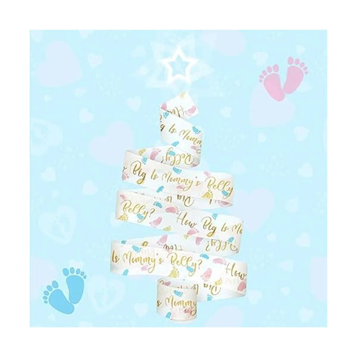 Diseño exquisito: la cinta métrica del vientre está diseñada con huellas rosas y azules, impresiones de palma y las palabras doradas How Big Is Mommys Belly, linda y delicada, que es fácil de atraer la atención de la mayoría de las personas