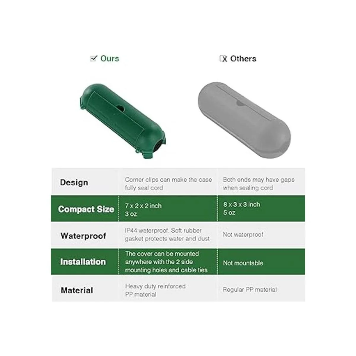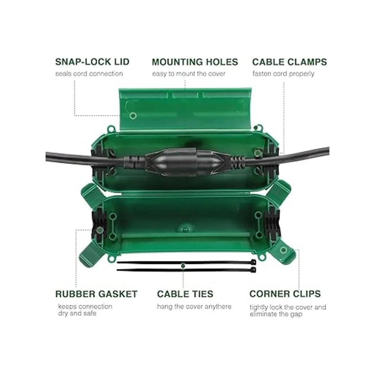 3 unidades Cubierta de seguridad para cable de extensión al aire libre, protección de conexión impermeable IP44, caja eléctrica resistente a la intemperie para enchufe al aire libre, toma de corriente, luz de vacaciones, Halloween y decoraciones de Navidad, verde