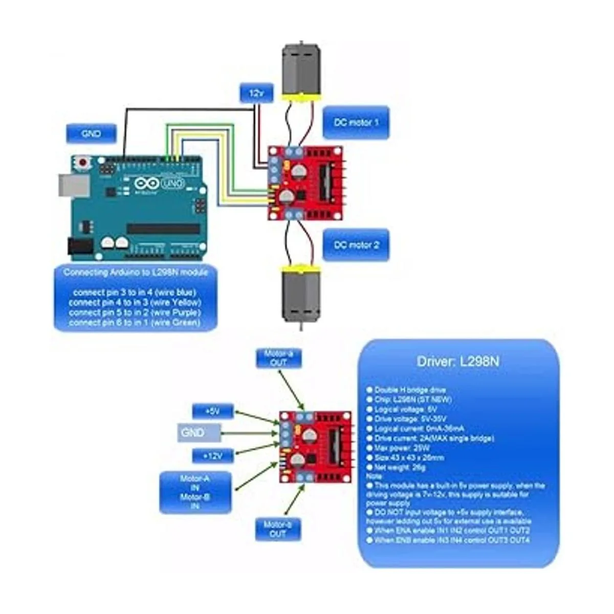 Voltaje de la placa del controlador de accionamiento del motor L298N 5 V35 V, corriente de accionamiento 2 A máximo, dimensiones externas 1.693 x 1.693 x 1.063 in.