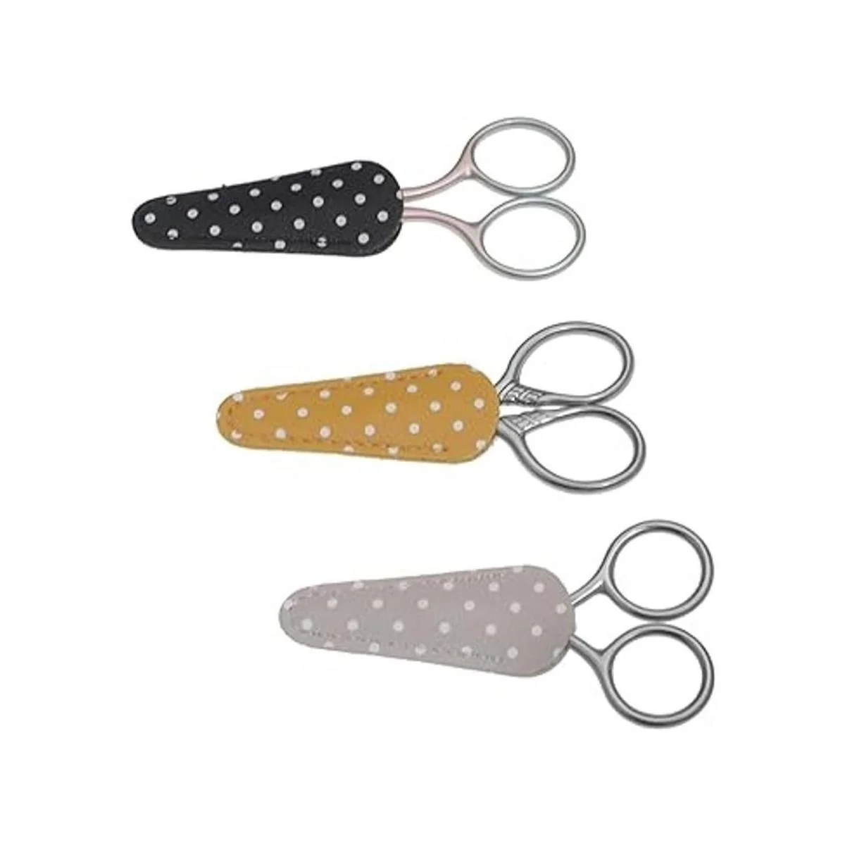 3 unids 3 colores bordado tijeras vaina seguridad lunares cuero tijeras cubierta protector colorido costura tijera vaina portátil ceja recorte belleza protección cubierta recoger bolsas