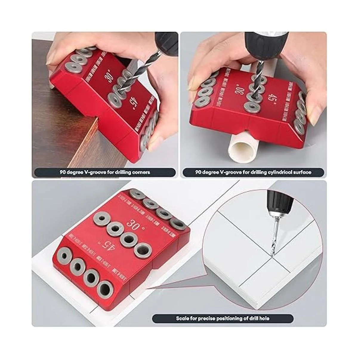 Tres ángulos de perforación: la guía de taladro tiene un ángulo de perforación de 30 grados, 45 grados y 90 grados. Adecuado para postes horizontales de 90 grados y barandillas de escaleras en ángulo de 45 y 30 grados, el ángulo se fija sin desviación, puedes taladrar rápidamente agujeros precisos de ángulo de 30/45/90 grados con un taladro de mano en el poste de la cubierta, ahorrando tiempo de trabajo.