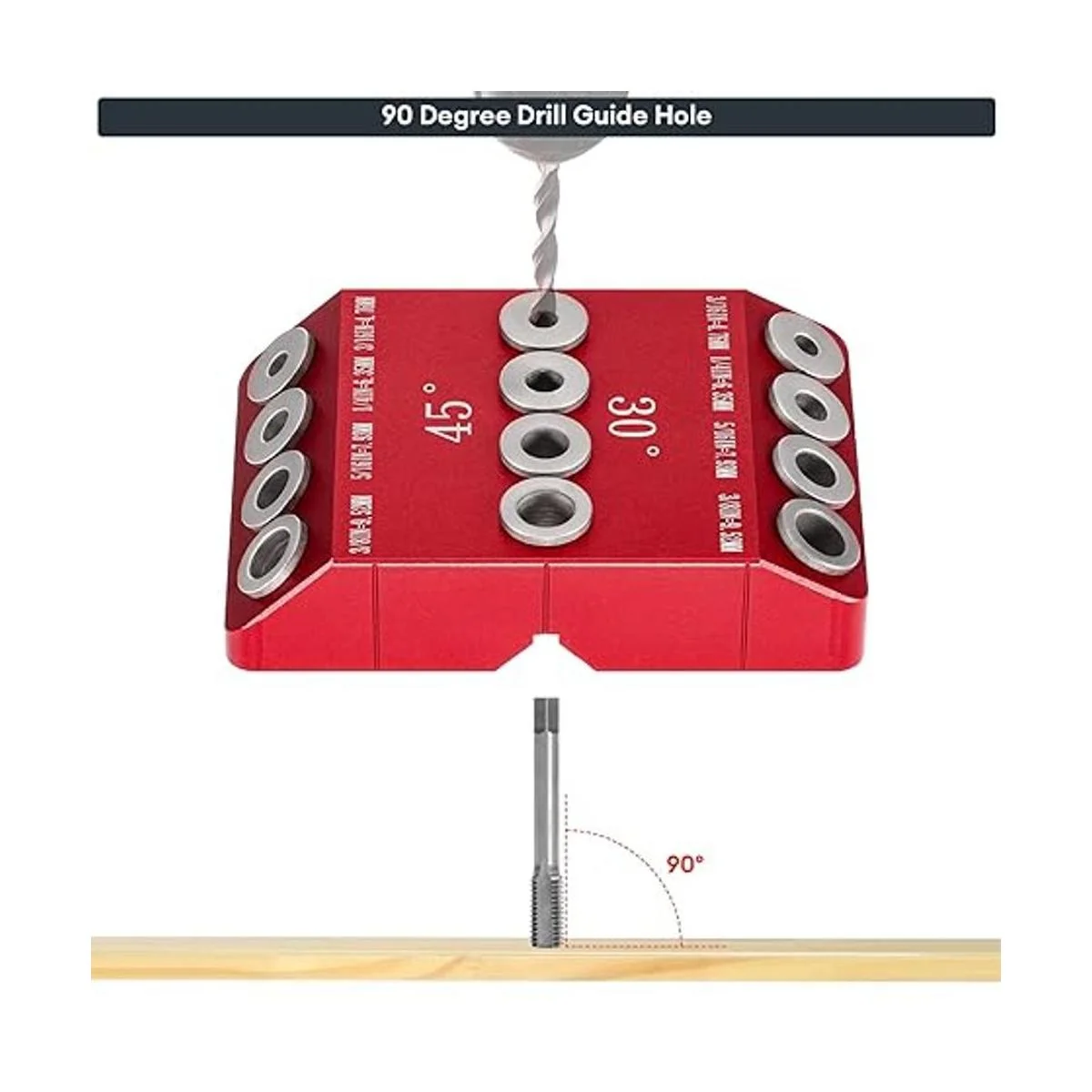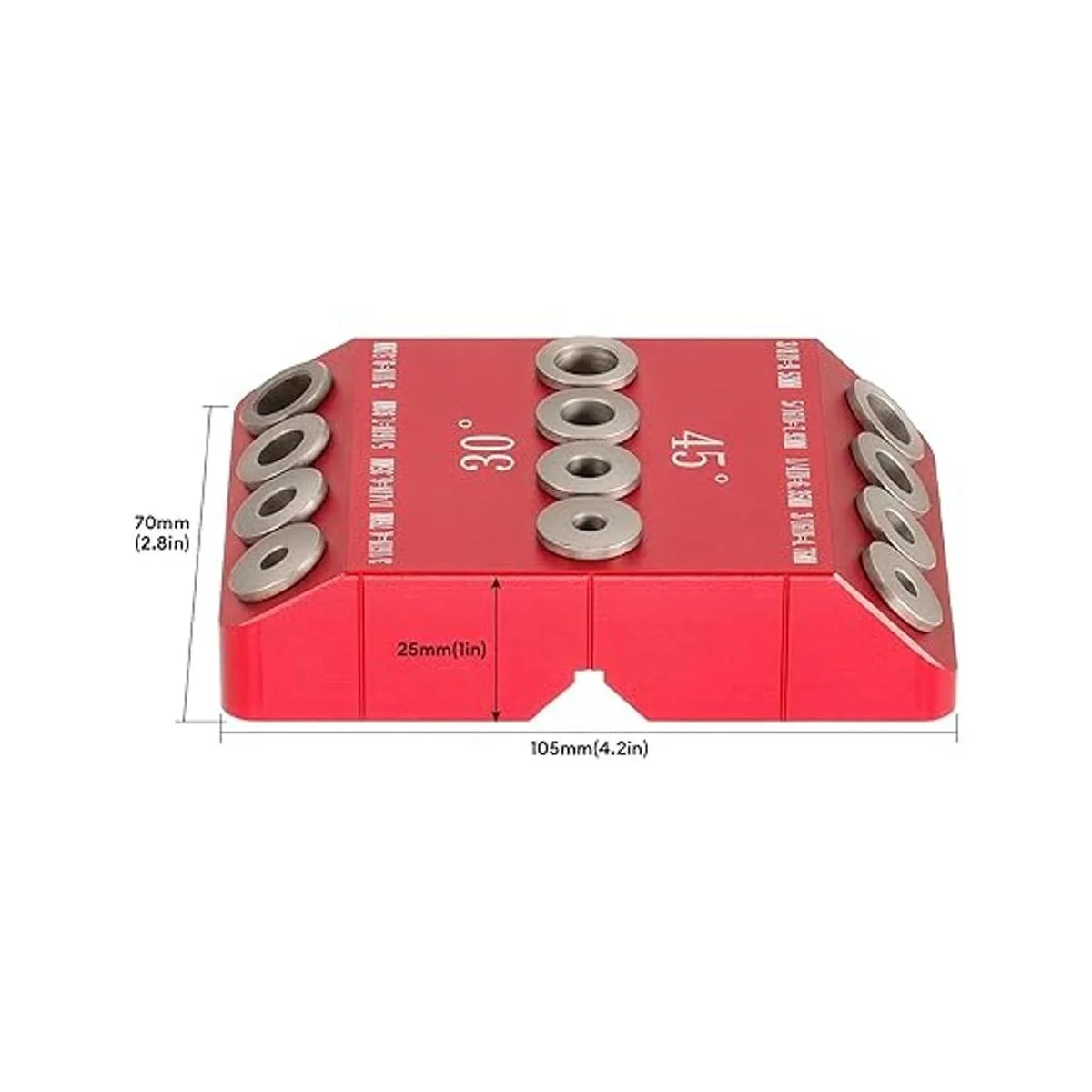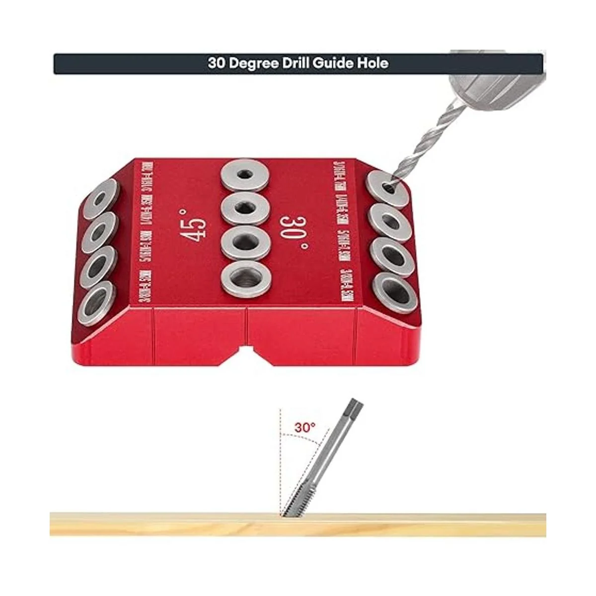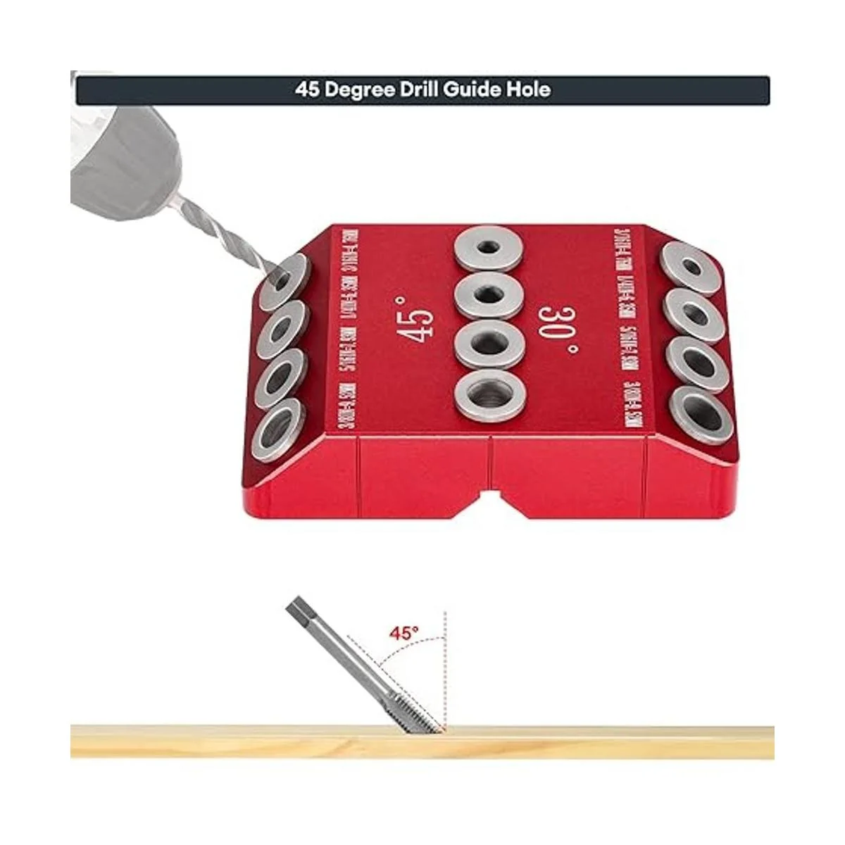 Cuatro tamaños de agujeros de guía: hay cuatro tamaños de agujeros guía para cada ángulo de perforación, que son de 0.375 in, 0.312 in, 0.250 in, 0.187 in, compatible con la mayoría de tornillos de retraso de barandilla de cable. Para taladrar el agujero de ángulo con más precisión, utiliza un taladro del tamaño correspondiente.