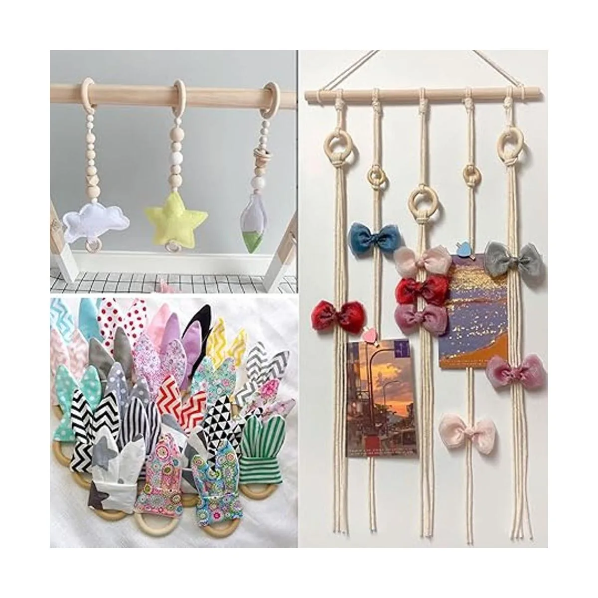 Anillos de madera: utiliza estos anillos de madera para hacer manualidades y hacer todo tipo de colgantes de pared de encaje, decoraciones de pared, coronas, colgadores de plantas, atrapasueños, campanillas de viento, tapices y cestas colgantes de plantas, etc. También puede hacer trabillas de cortina, servilletas, cinturones a juego, ropa y mucho más.