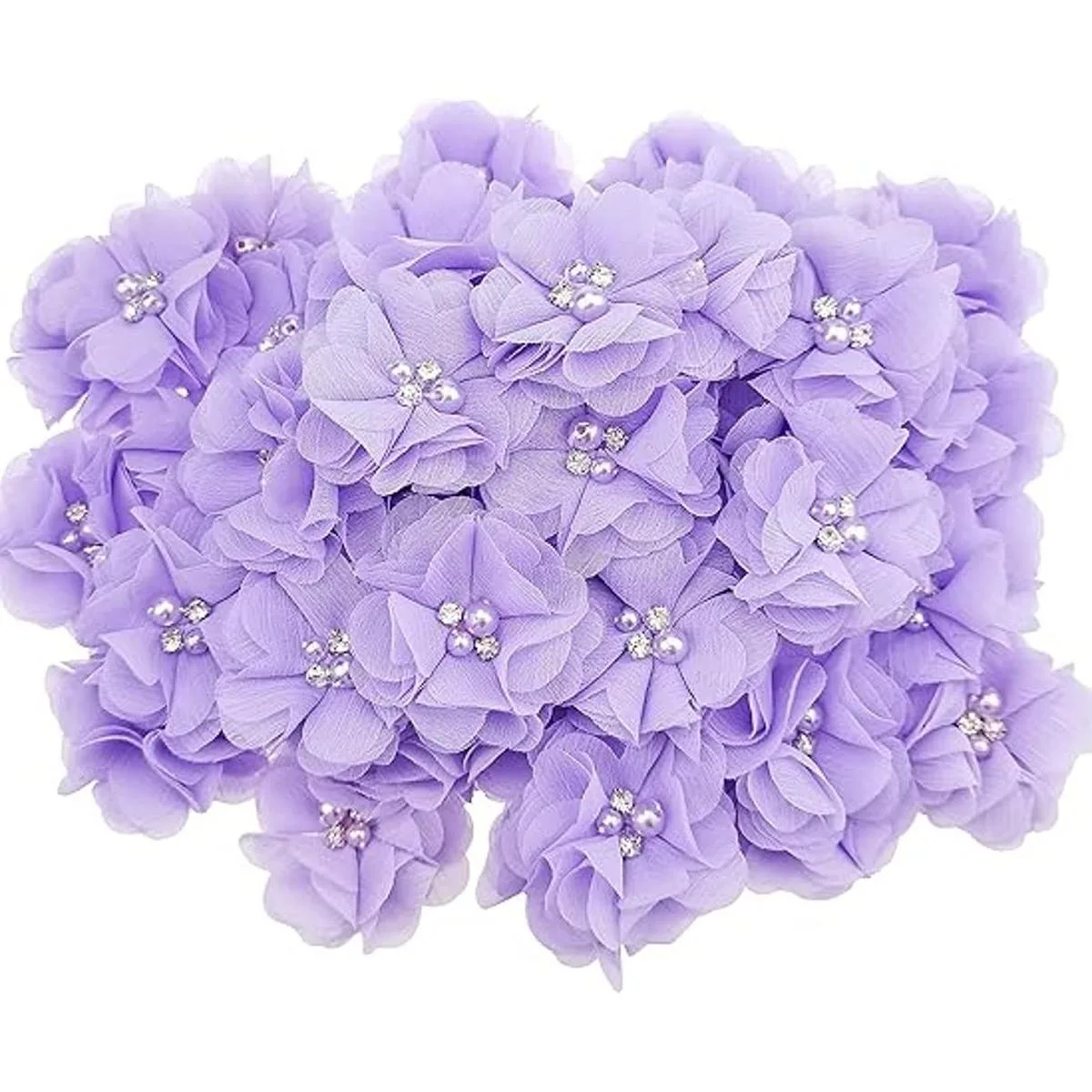 30 apliques de tela de costura de flores de gasa moradas con diamantes de imitación para ropa, diademas de flores, manualidades, decoración de fiestas, apliques de costura