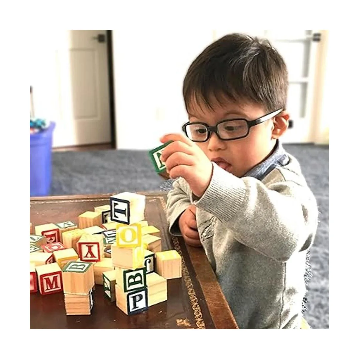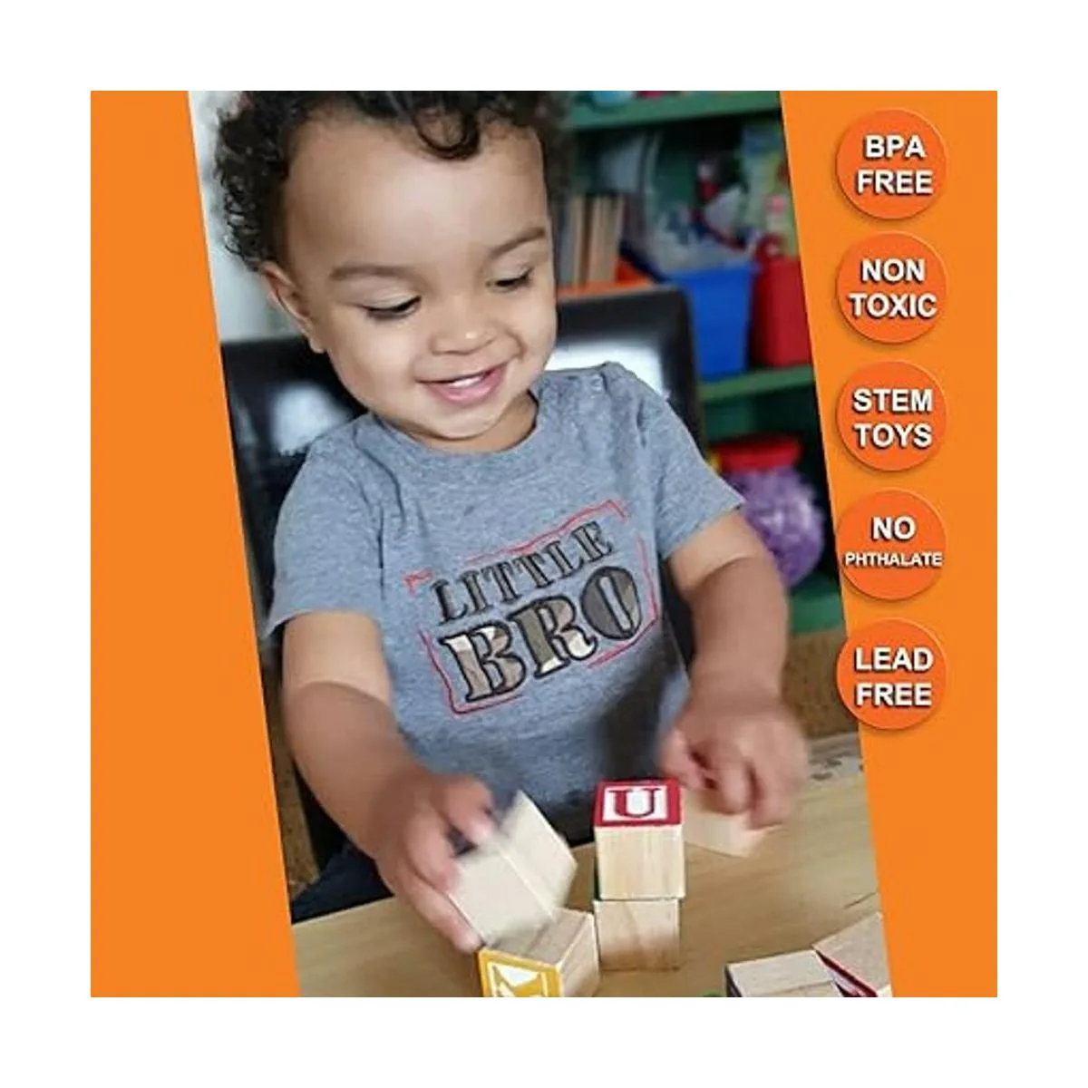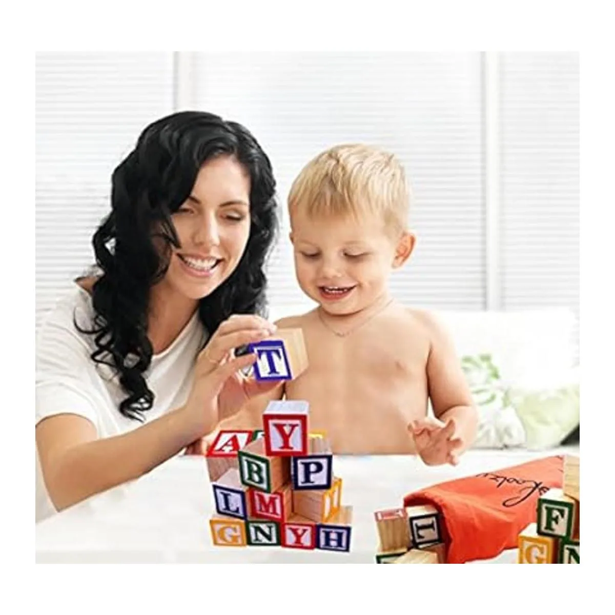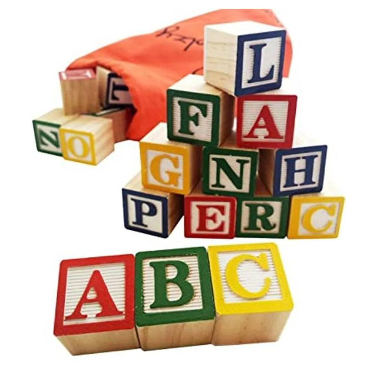 30 bloques con letras de colores de Skoolzy Juguete de construcción en madera ABC, para bebés, guarderías y preescolar Bloques de madera de lectura con bolsa de transporte
