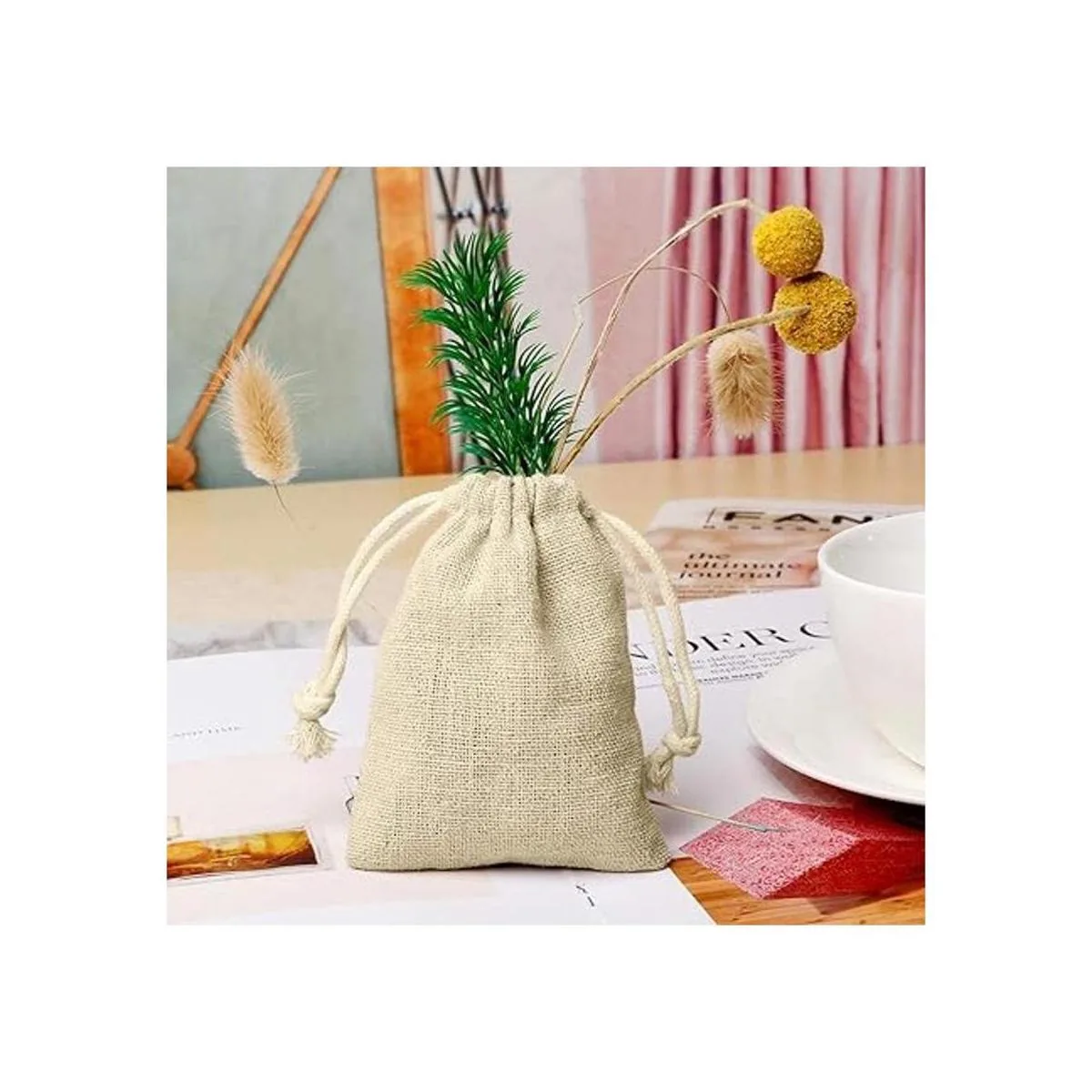 Espacio suficiente: aproximadamente 3.9 in x 3.1 in largo x ancho, las dimensiones de las bolsas de arpillera de lino natural debajo del cordón que el espacio utilizable en el interior es de 3.7 pulgadas altura para decorar tus dulces de boda, adornos, almacenar tu botella de maquillaje, monedas, etc.