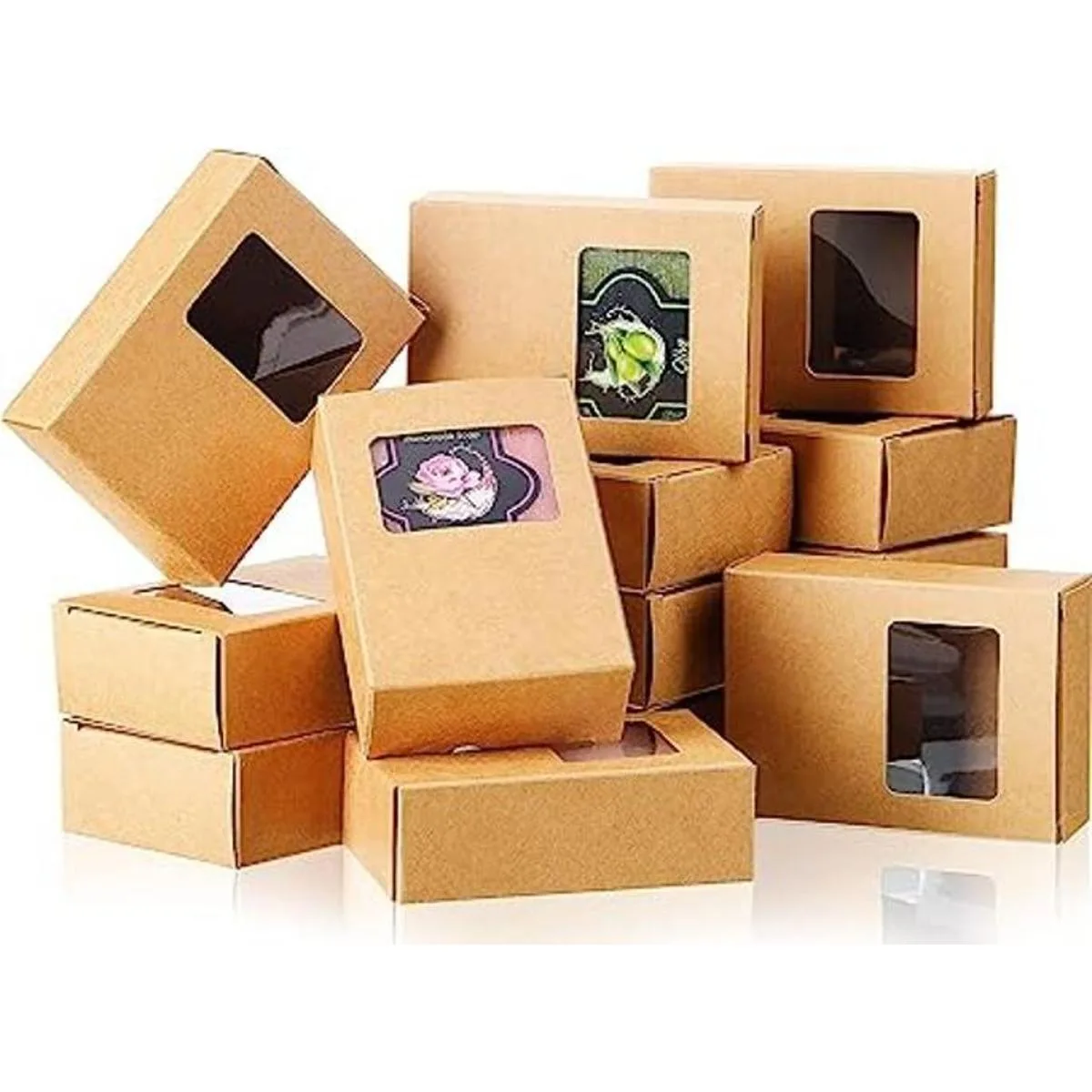 Práctico diseño de ventana: estas cajas de jabón kraft están diseñadas con ventanas transparentes, que te permiten distinguir rápidamente los artículos en el interior sin abrir cajas, lo que te ofrece mucha comodidad para tus usos diarios y de fiesta