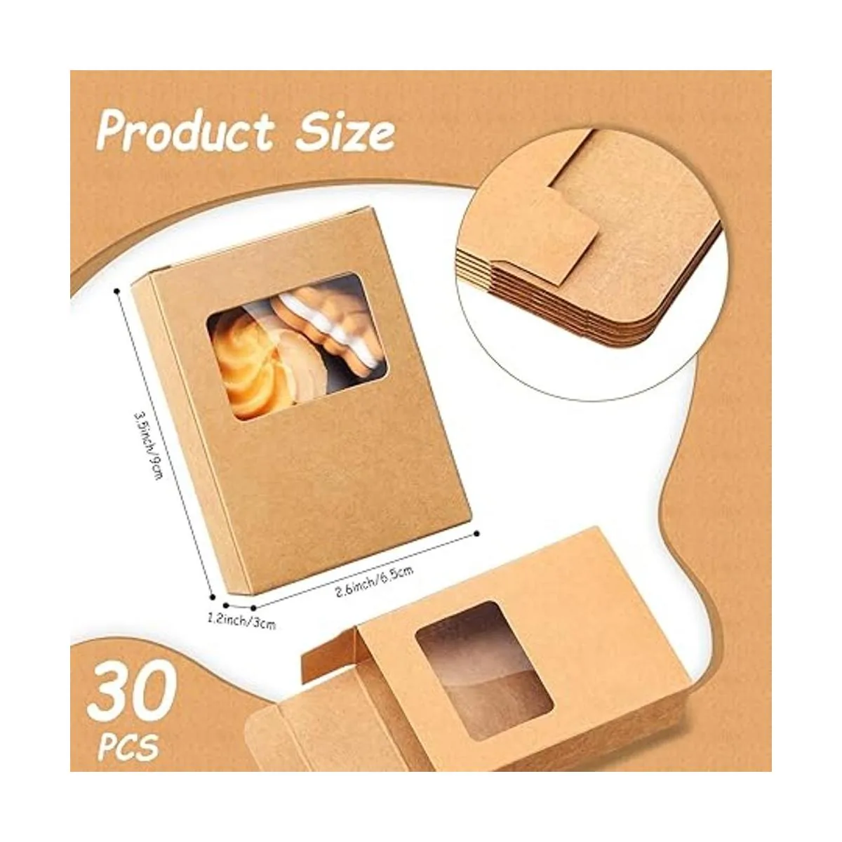 30 cajas de embalaje de jabón, caja de jabón de papel, caja de jabón de estraza con ventana, caja de regalo rectangular para ventana de regalo para hacer jabón casero, suministros de fiesta, embalaje de golosinas, 3.5 x 2.6 x 1.2 pulgadas marrón