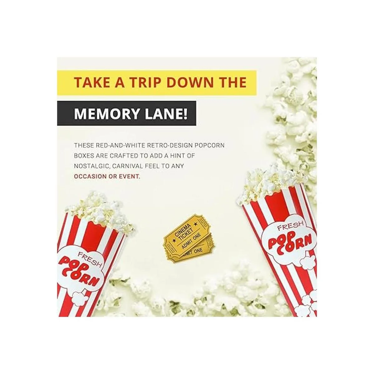 30 cajas de palomitas de maíz de 7.75 pulgadas de alto y capacidad para 46 onzas. Diseño retro vintage de moda rojo y blanco, rayas nostálgicas de carnaval como bolsas de palomitas de maíz y tinas de palomitas de maíz varias cantidades Salbree