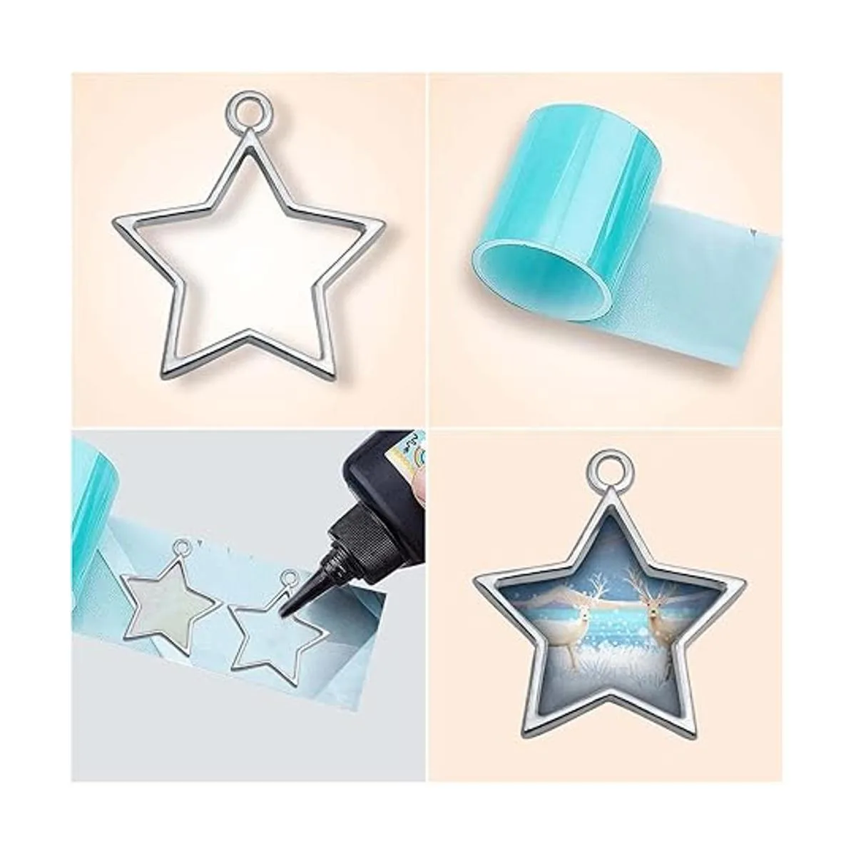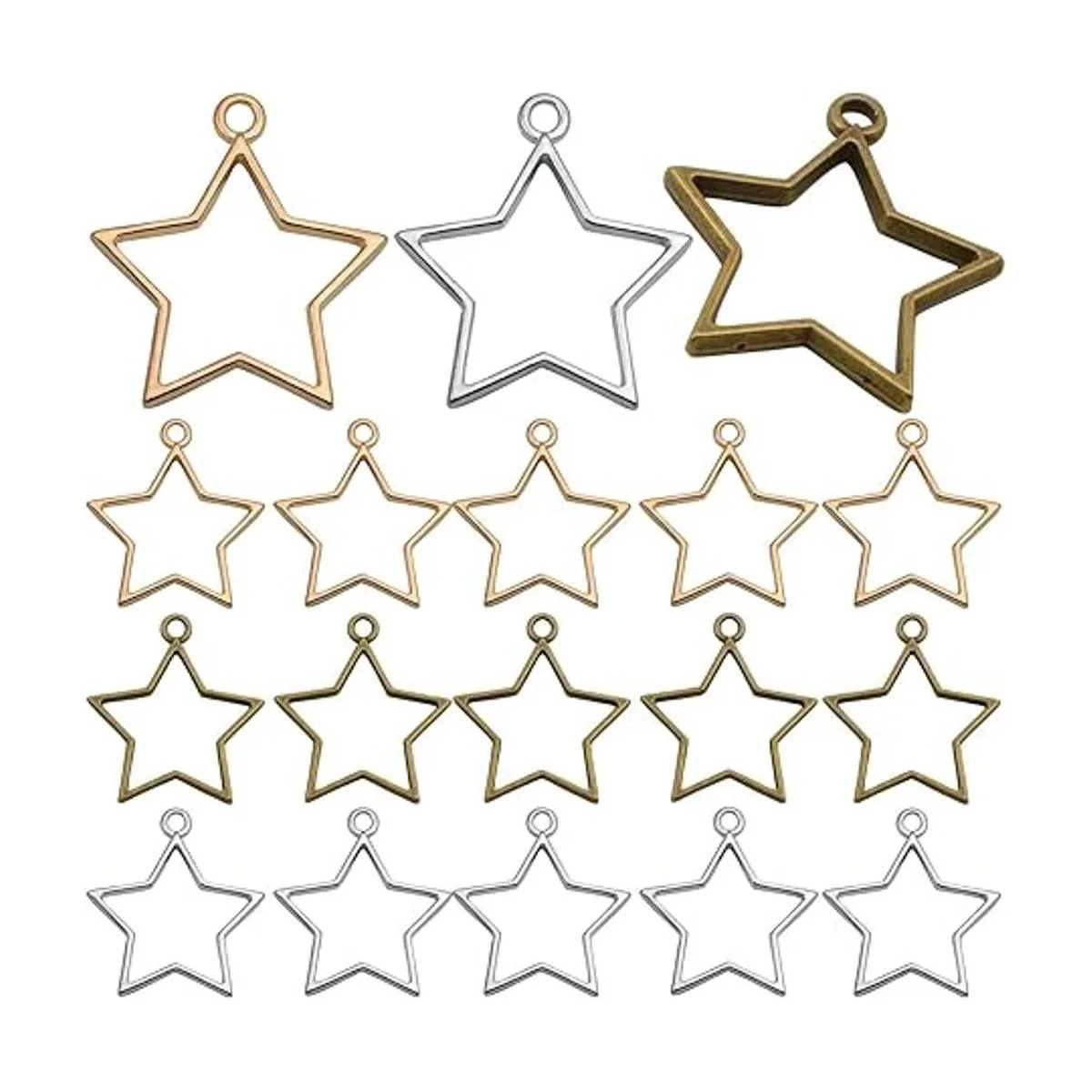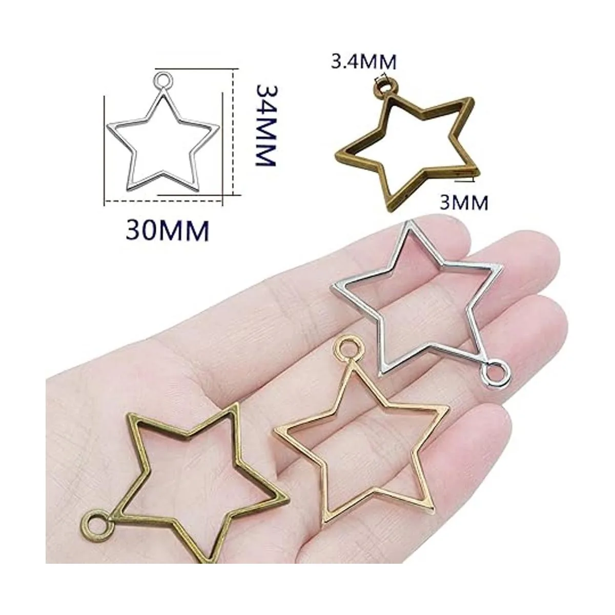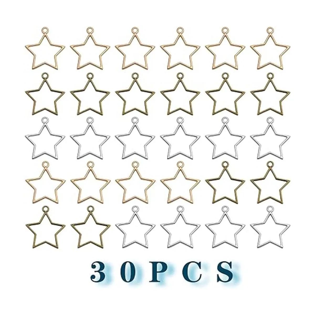 30 colgantes de metal con parte trasera abierta y marco geométrico en blanco, dijes huecos de pentagrama en forma de estrella para manualidades de resina, suministros de fabricación de joyas, 3 colores