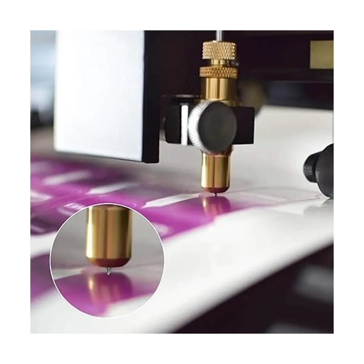 Material de corte: las cuchillas de punta fina son adecuadas para materiales de peso ligero a medio, como tela, PVC, autoadhesivo, película reflectante, material de sello, papel con purpurina, papel de computadora, material de sello, madera ligera y algunos tejidos.