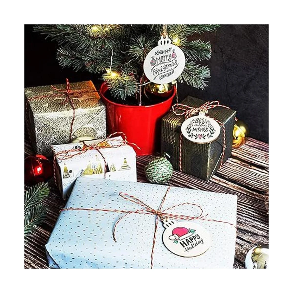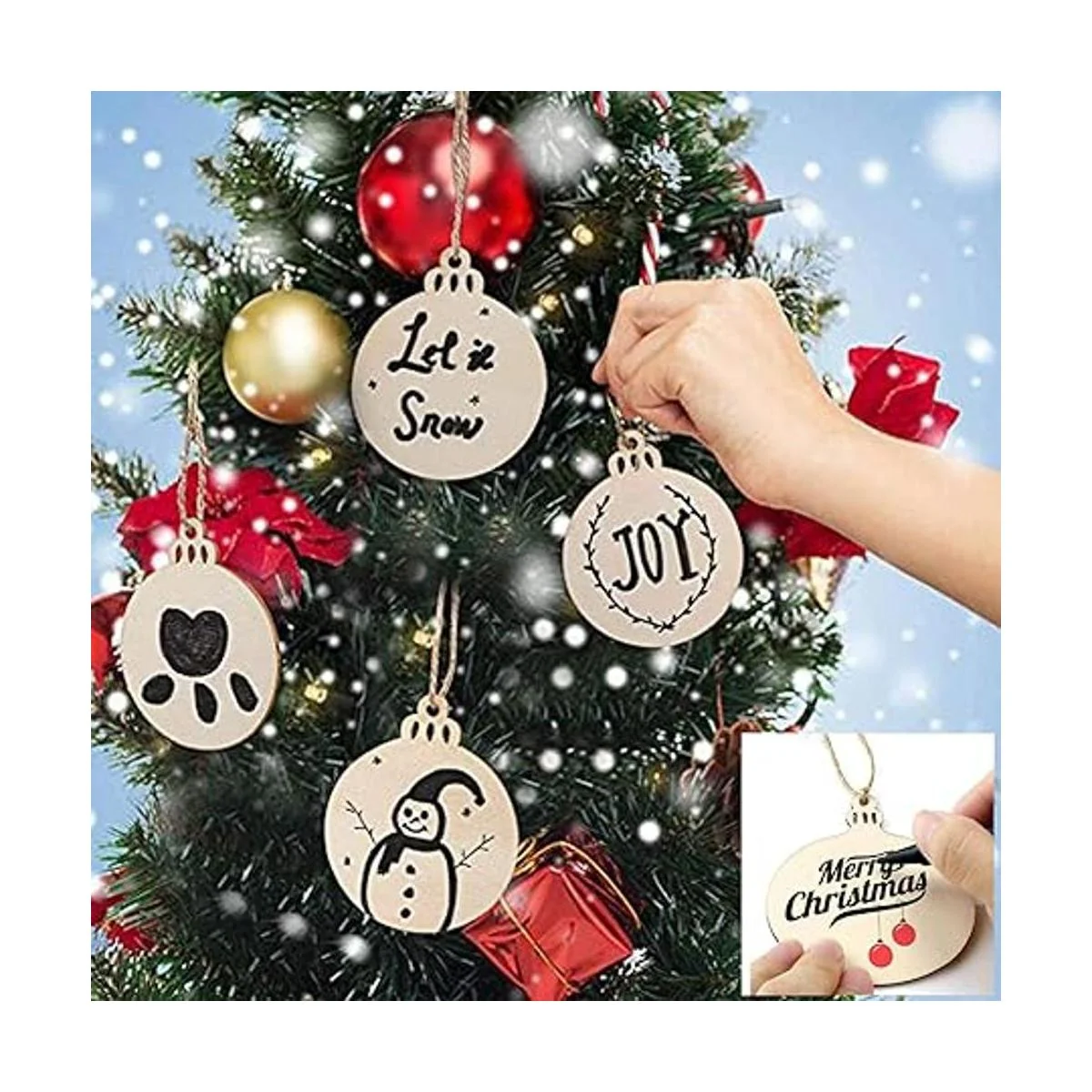 Fácil de escribir o pintar. Cada rodaja de madera cuenta con un pequeño agujero que se puede enhebrar con cuerda, cinta o encaje para colgar fácilmente, creando un aspecto vintage y rústico para tu fiesta de Navidad. Puedes adornos para cada miembro de la familia en tu árbol de Navidad.