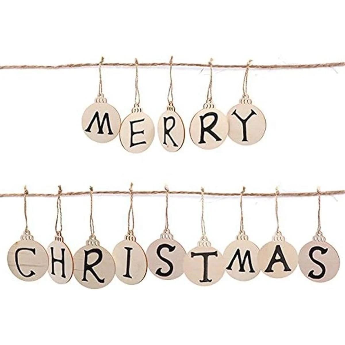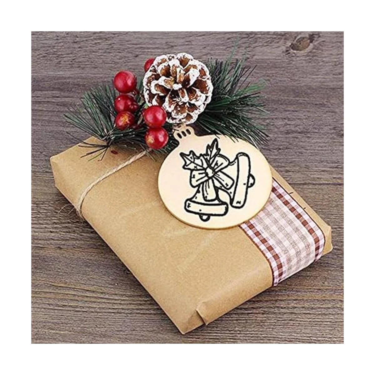 Las etiquetas colgantes de Navidad están hechas de madera natural de alta calidad, cortada con láser y pulida. Gran éxito en una fiesta familiar de Navidad. Puedes utilizar pegatinas y dejar que cada niño haga sus propios adornos.