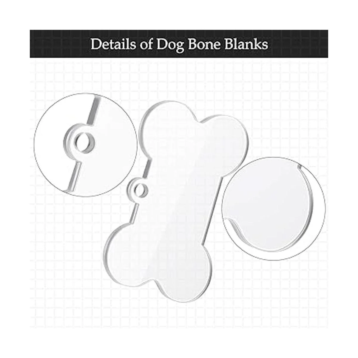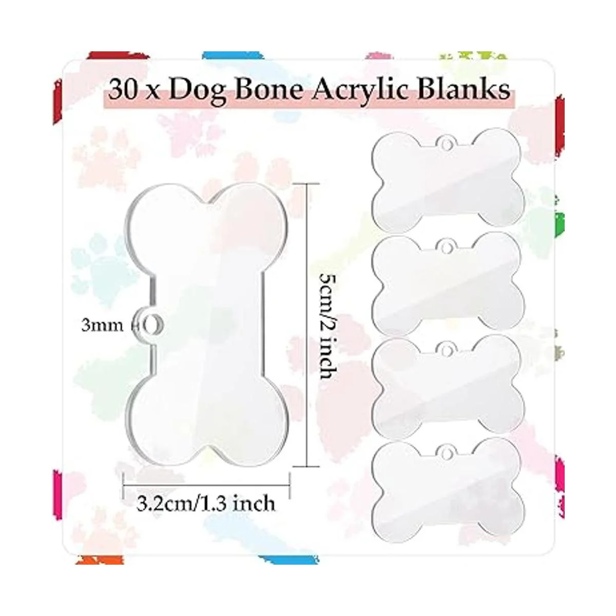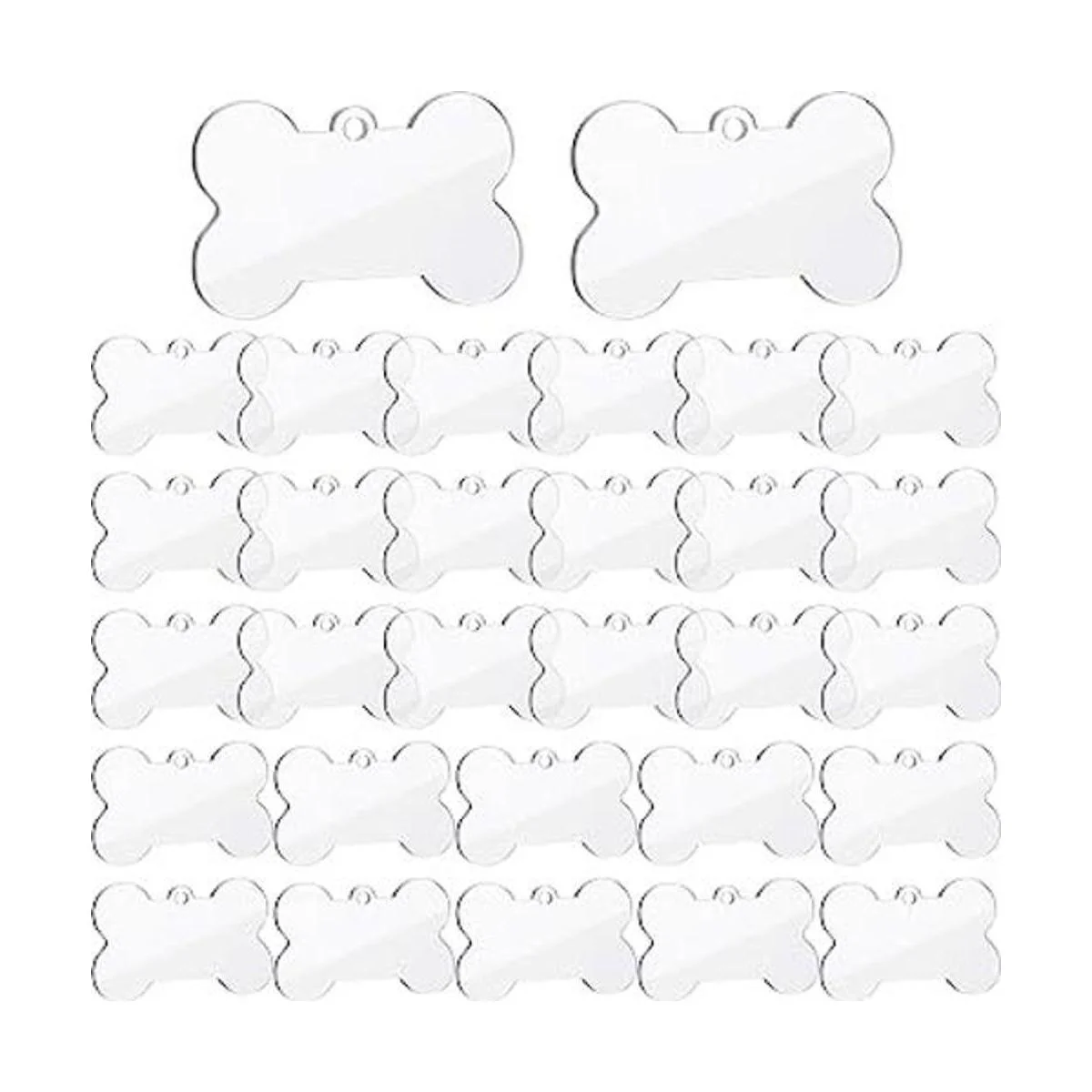 30 etiquetas de sublimación en blanco para perro, llavero de acrílico transparente, forma de hueso de perro, discos transparentes precortados para proyectos de vinilo personalizados estilo hueso, Acrílico, Sin gemas.