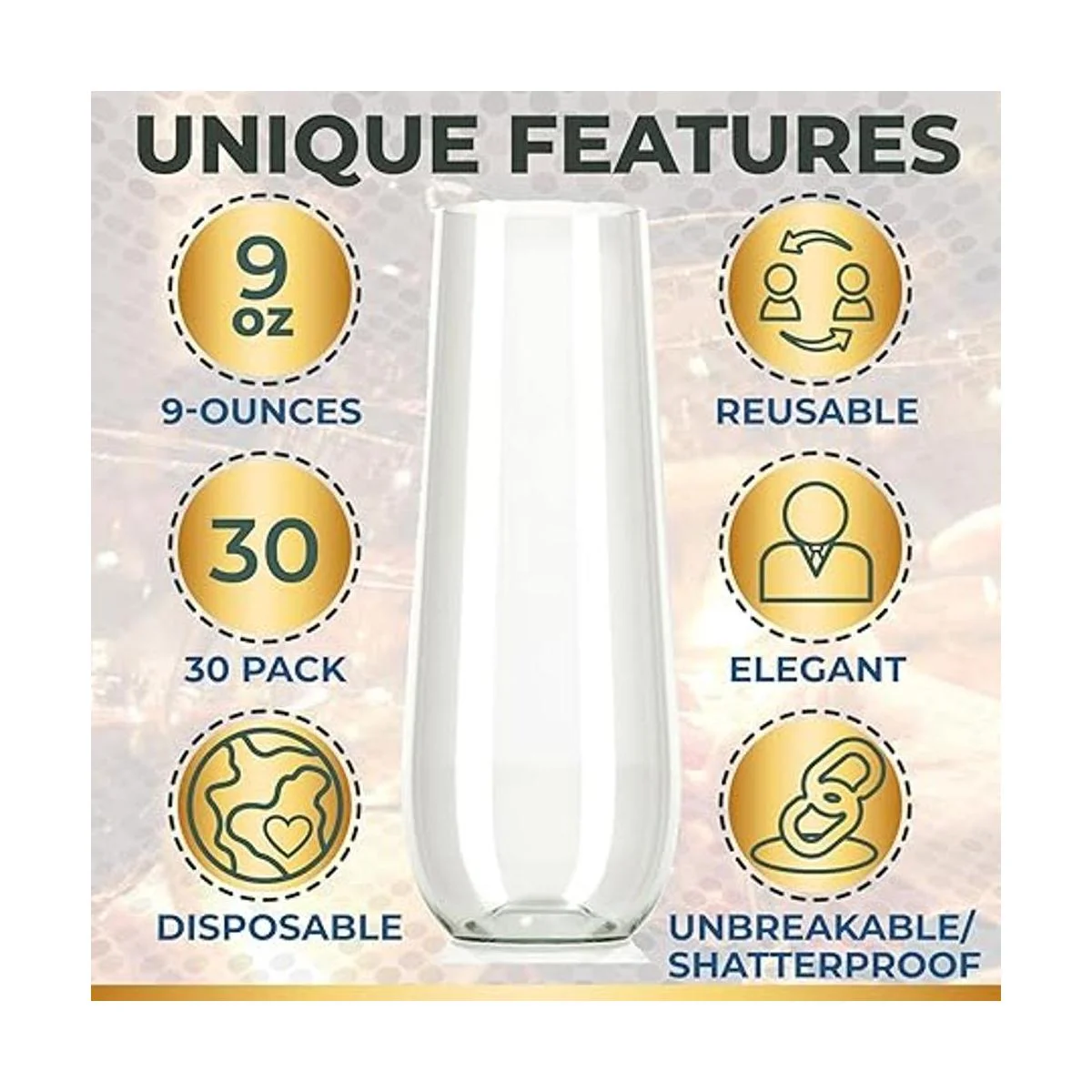 30 flautas de champán de plástico sin tallo, vasos desechables irrompibles, paquete de 30 Vaso de champán transparente de 9 onzas, sin BPA, ideal para bodas, cumpleaños, fiestas
