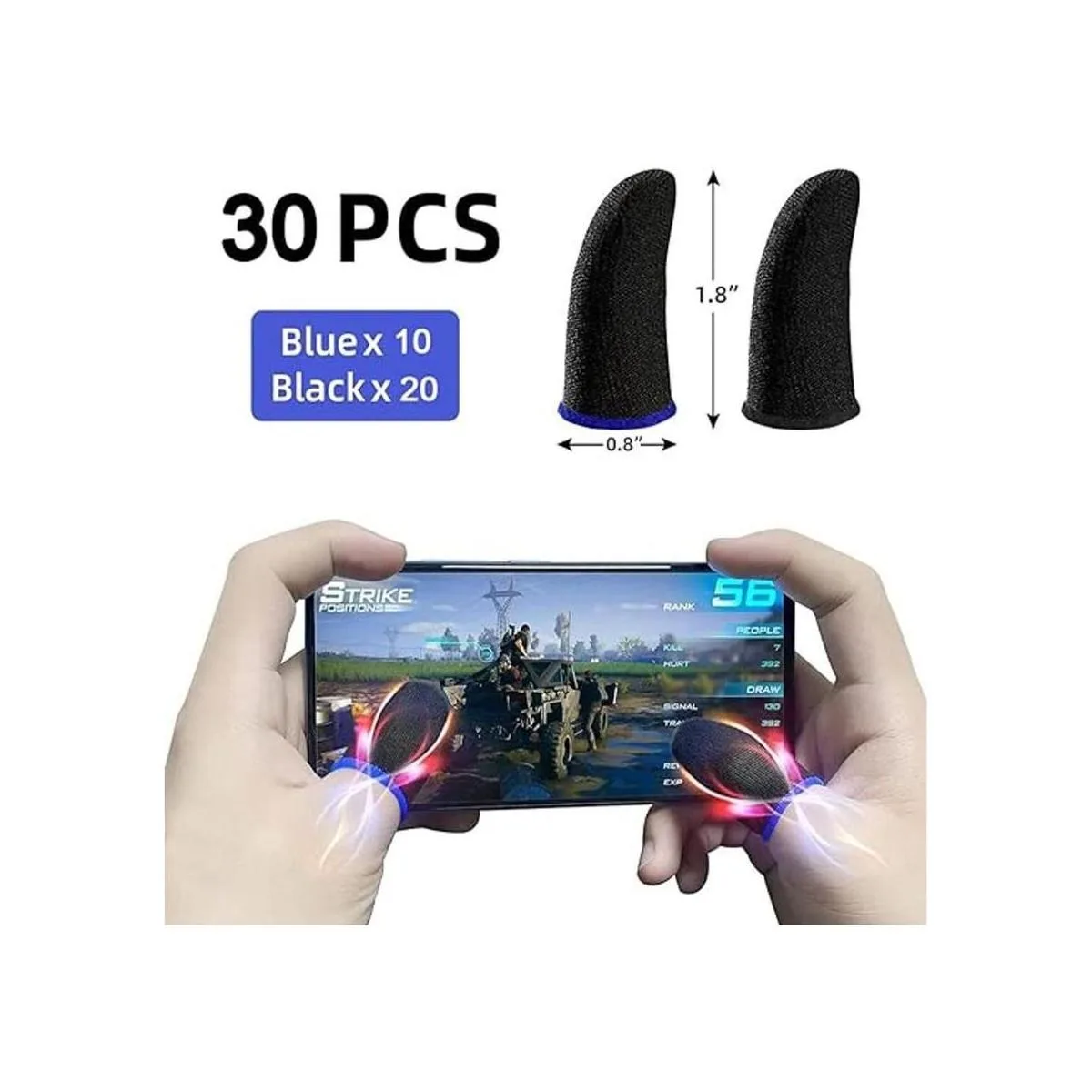 30 fundas para dedos de juego para juegos móviles, antisudor, transpirable, sin costuras, para League of Legend, PUBG, reglas de supervivencia, cuchillos fuera, Fortnine