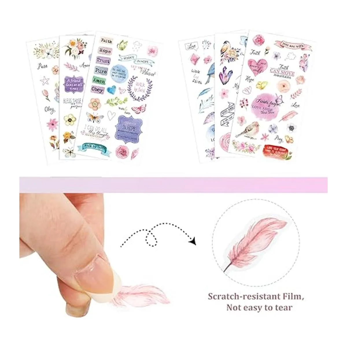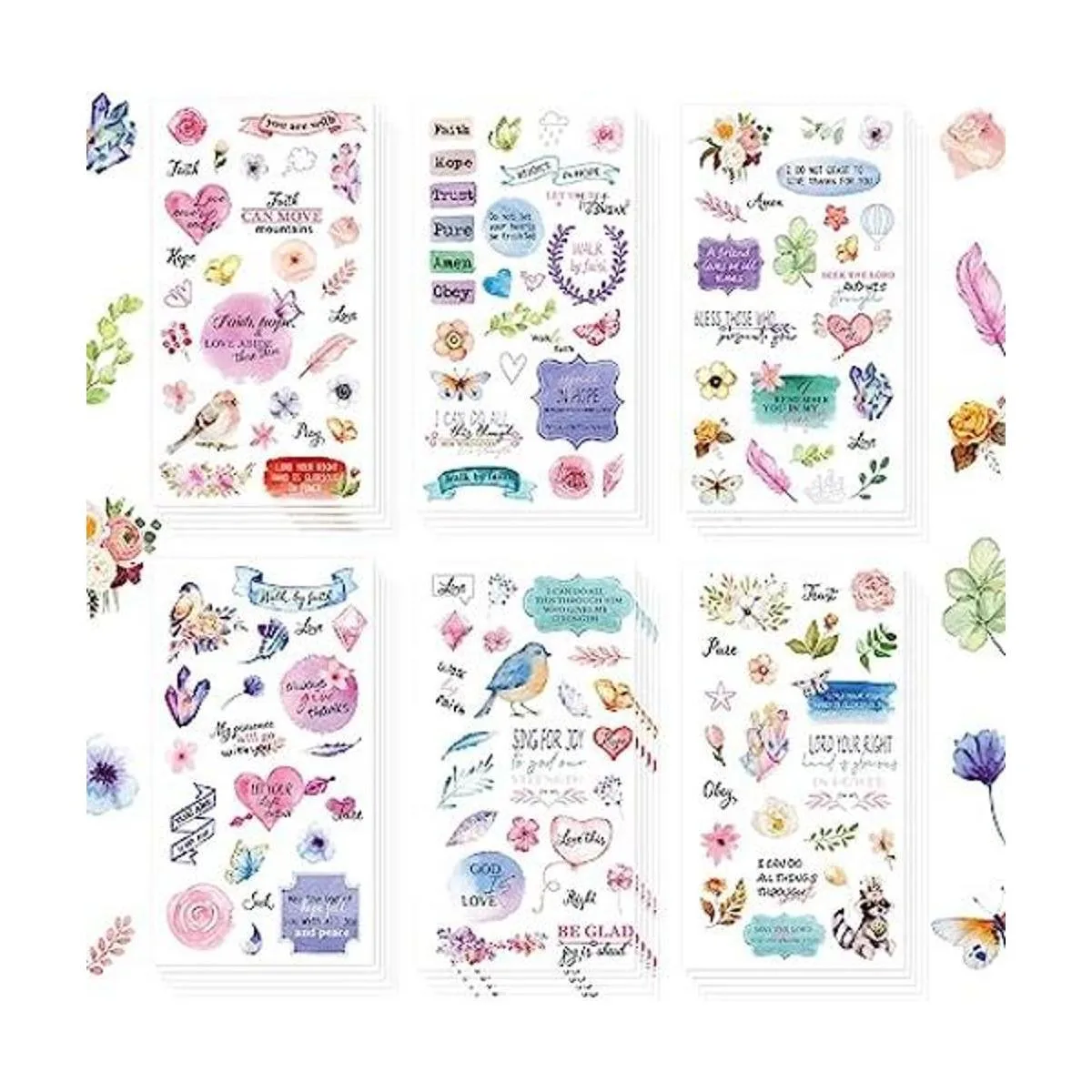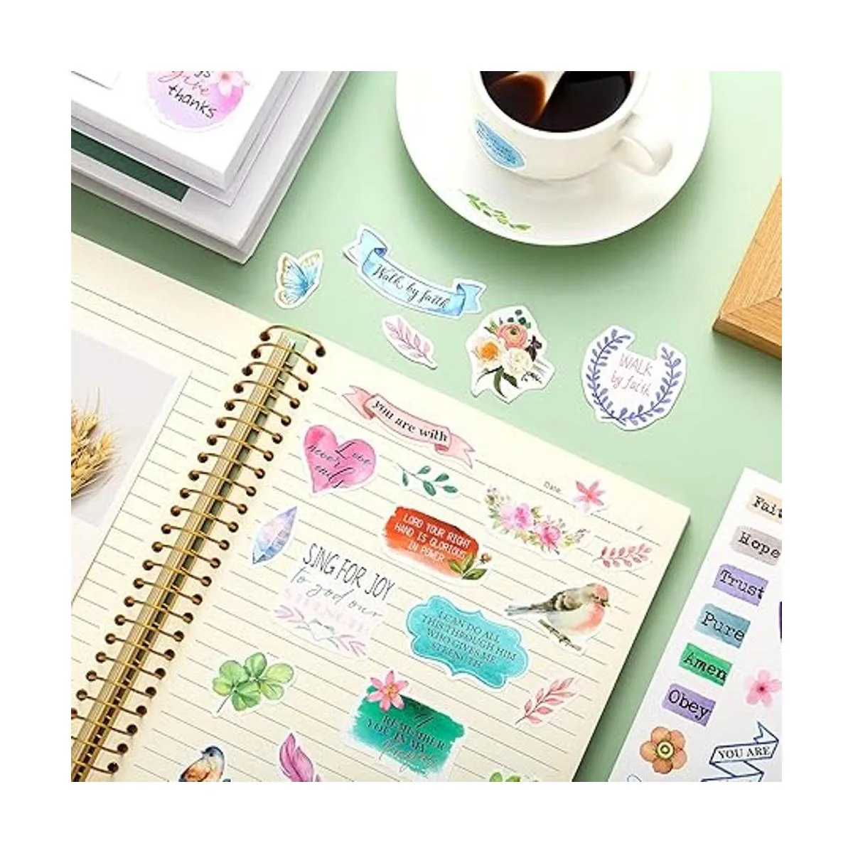 Material útil: las calcomanías de acuarela para la Biblia están hechas de material de PVC de calidad con adhesivo en la parte posterior, impermeables y fiables de usar, no se decoloran fácilmente, desgastan o se caen, se pueden mantener y aplicar durante mucho tiempo