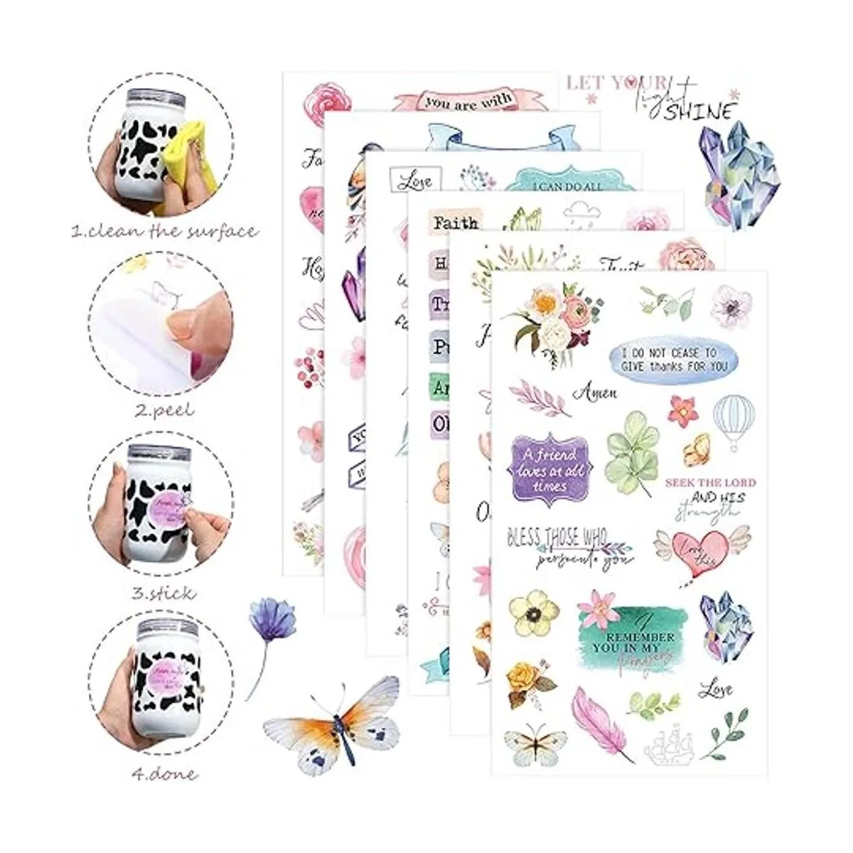 Fácil de usar: cada hoja de calcomanías de la Biblia para diario mide aproximadamente 8.3 x 4.5 in, el tamaño adecuado para aplicar y almacenar; solo tienes que despegarlas y pegarlas en cualquier superficie lisa y limpia que quieras decorar, muy fácil y conveniente