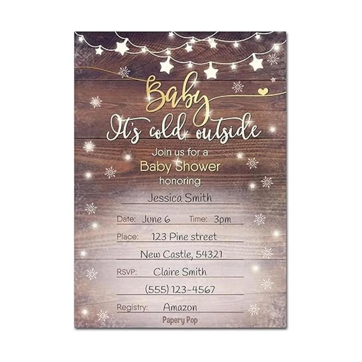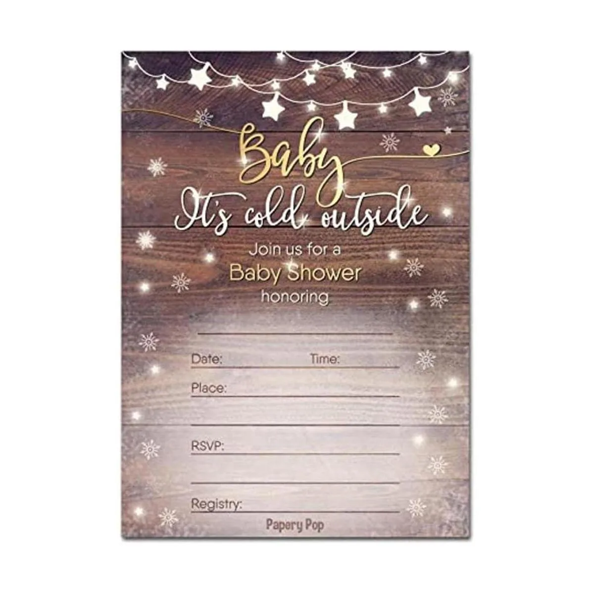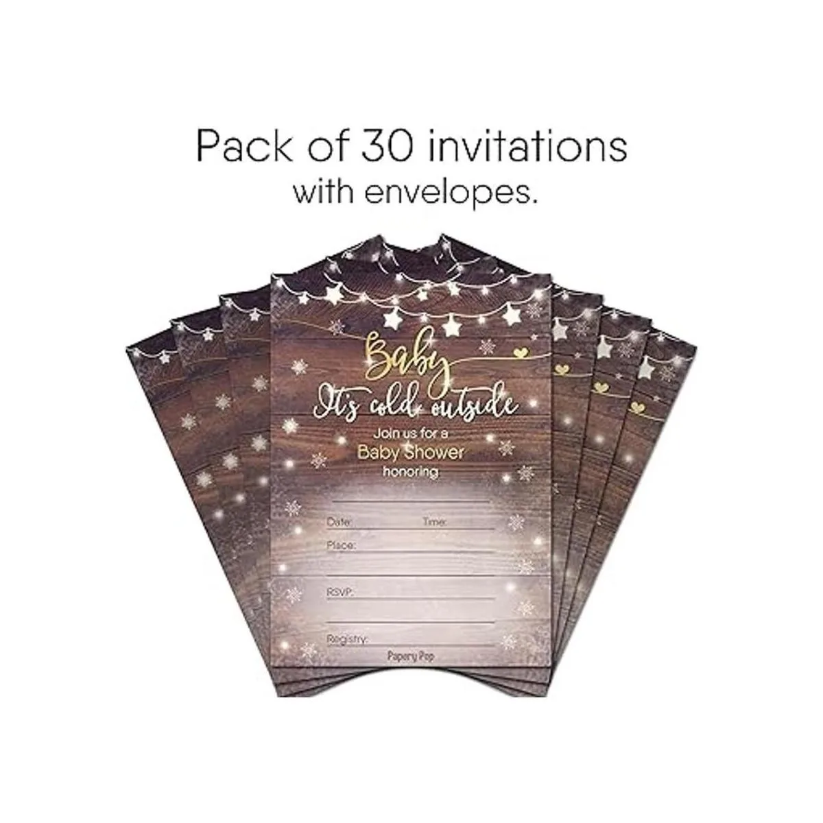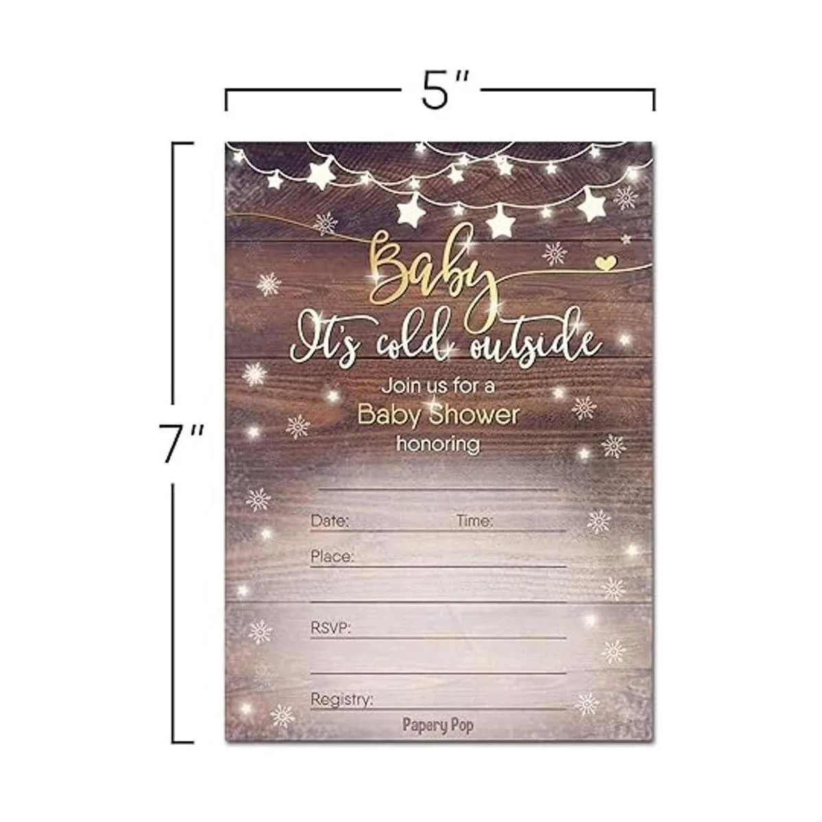 30 invitaciones para la ducha de bebé para niño o niña con sobres 30 unidades Baby Its Cold Outside Sexo neutro se adapta perfectamente con rústico madera Baby Dower Decoraciones y suministros