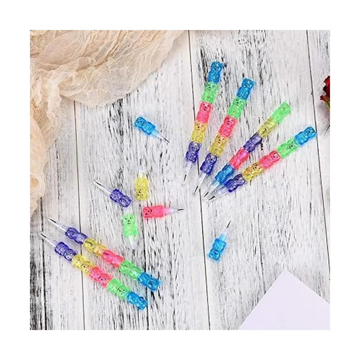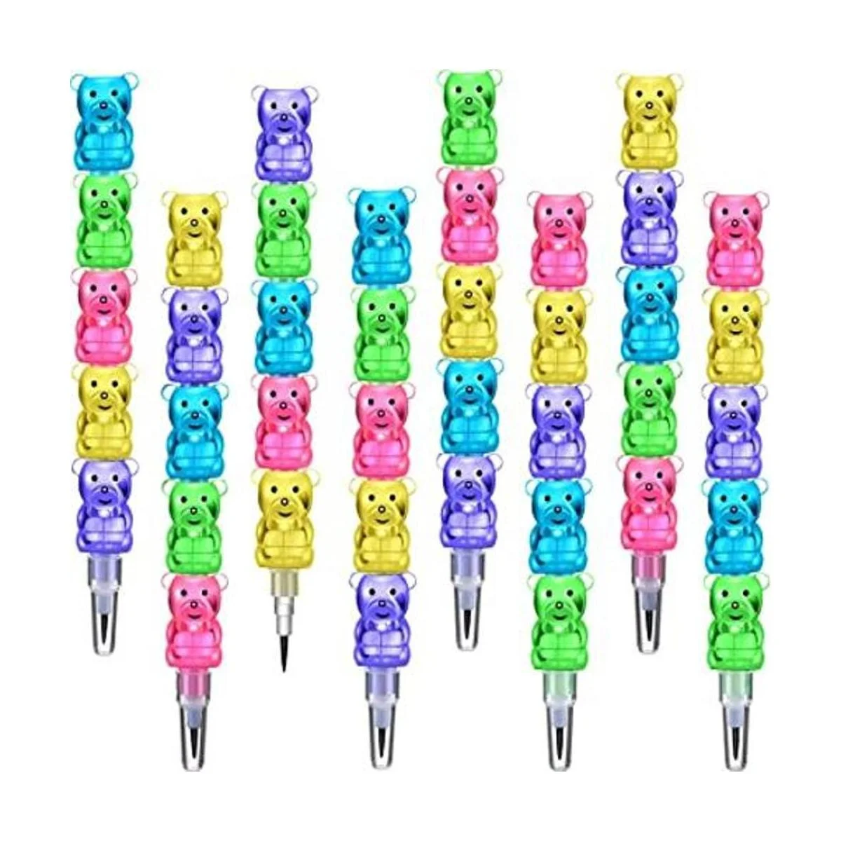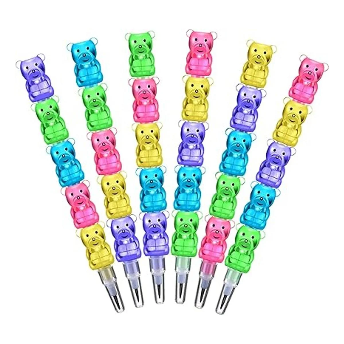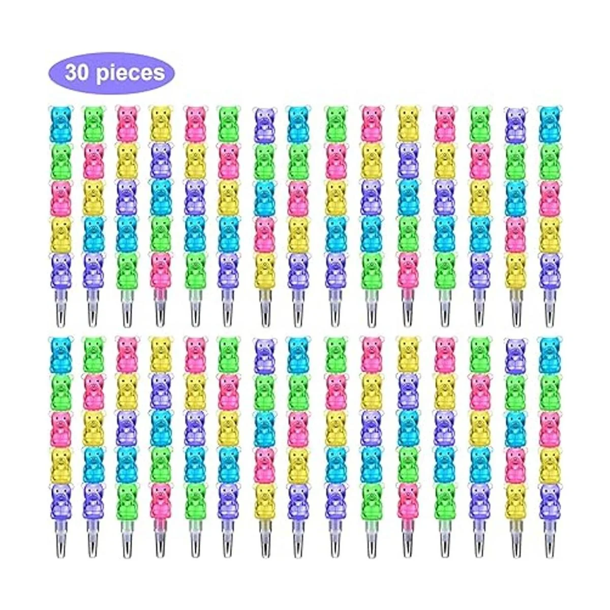 30 lápices apilables, lápices de plástico para oso, lápices de punta apilables, lápices de colores apilables 5 en 1, recuerdos de fiesta para suministros de fiesta de cumpleaños, equipo de diversión escolar
