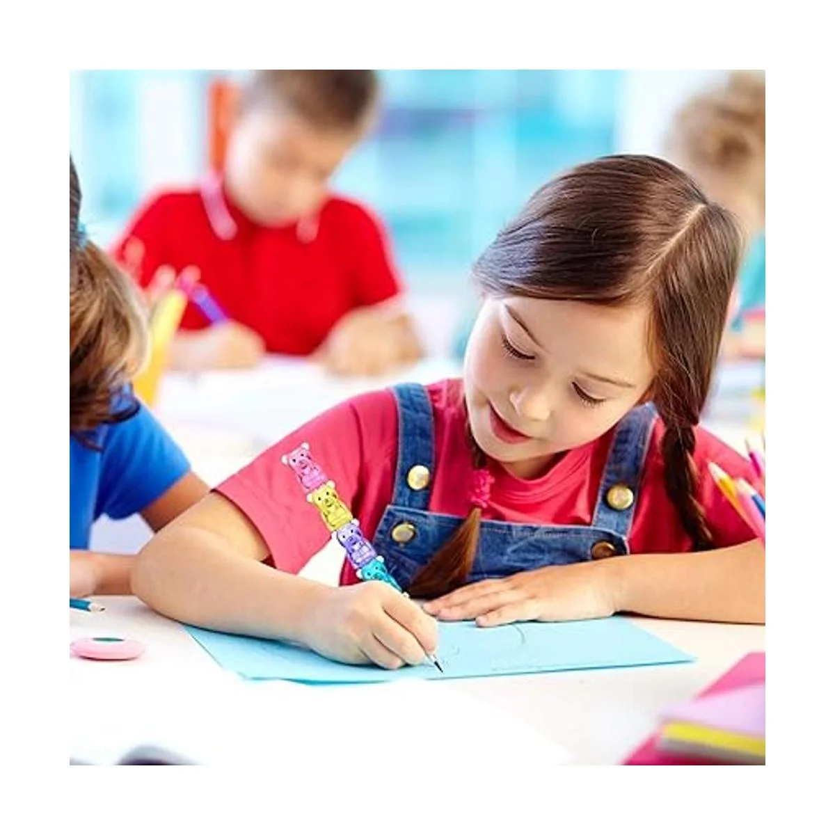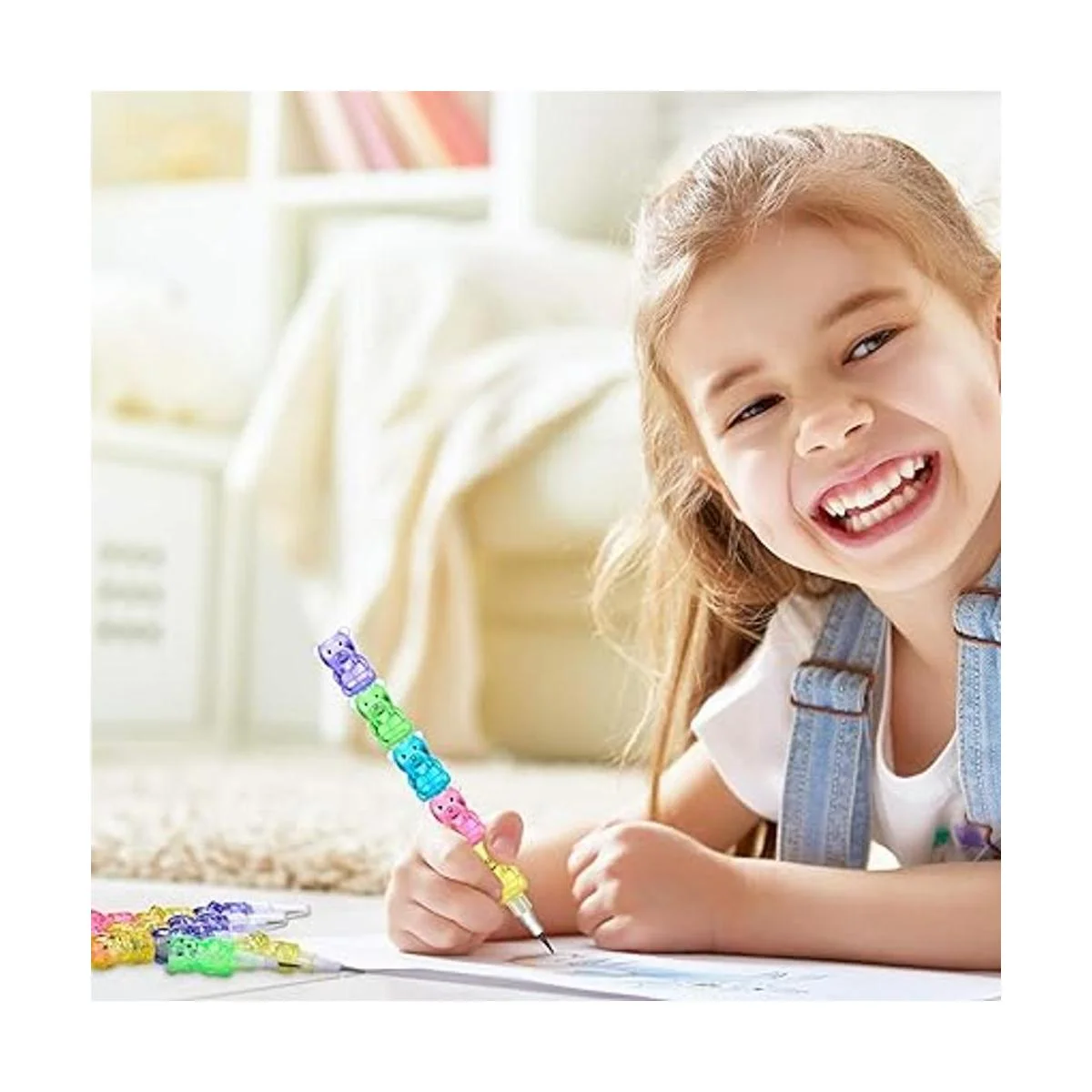 Diseño novedoso: cada lápiz apilable consta de 5 colores diferentes, azul, verde, rosa, amarillo y morado, con bonito aspecto en forma de oso, se ve novedoso y lindo, agradable para el uso de los niños