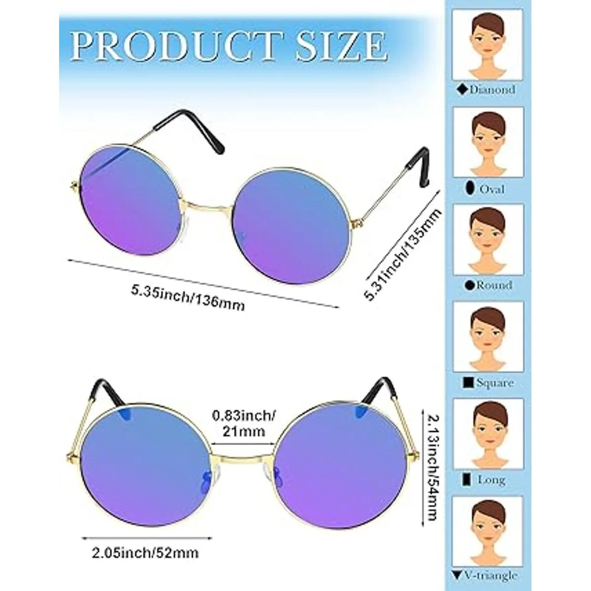 30 pares de gafas de sol hippie redondas retro de colores hippie de los años 60 y 70 de moda, gafas de sol con marco de metal, lentes reflectantes para mujeres y hombres, multicolor, Colores Variados, one size, about 136 mm x 54 mm