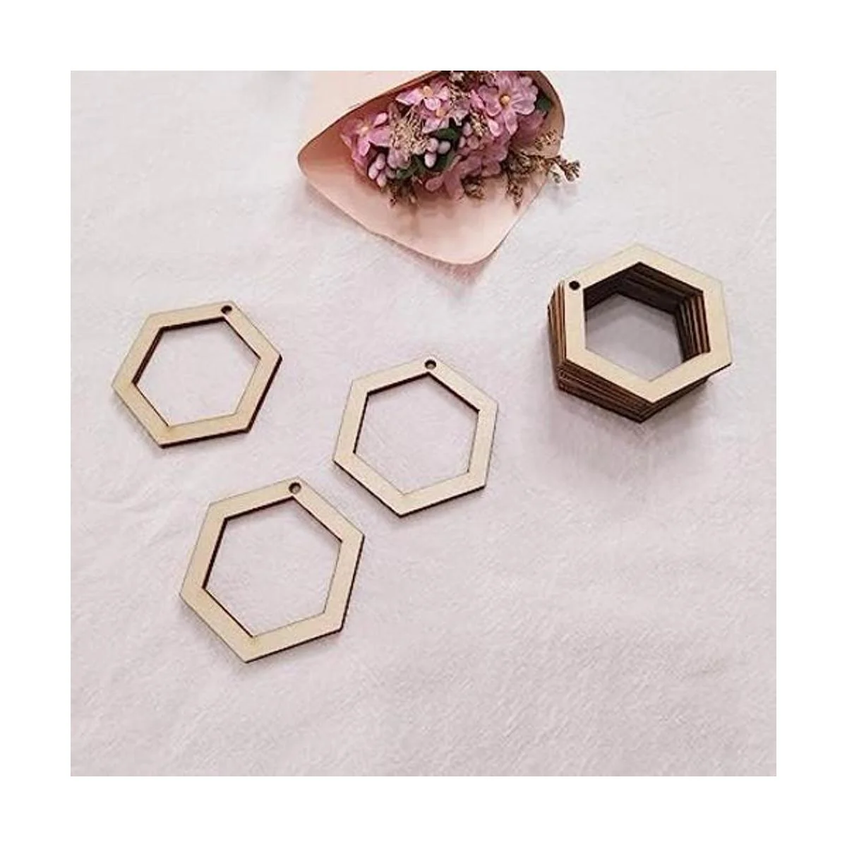 30 pendientes de madera hexagonal sin terminar para bricolaje, pendientes de madera natural, corte por láser, en blanco 2.0 in