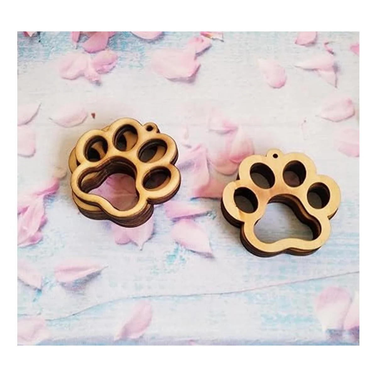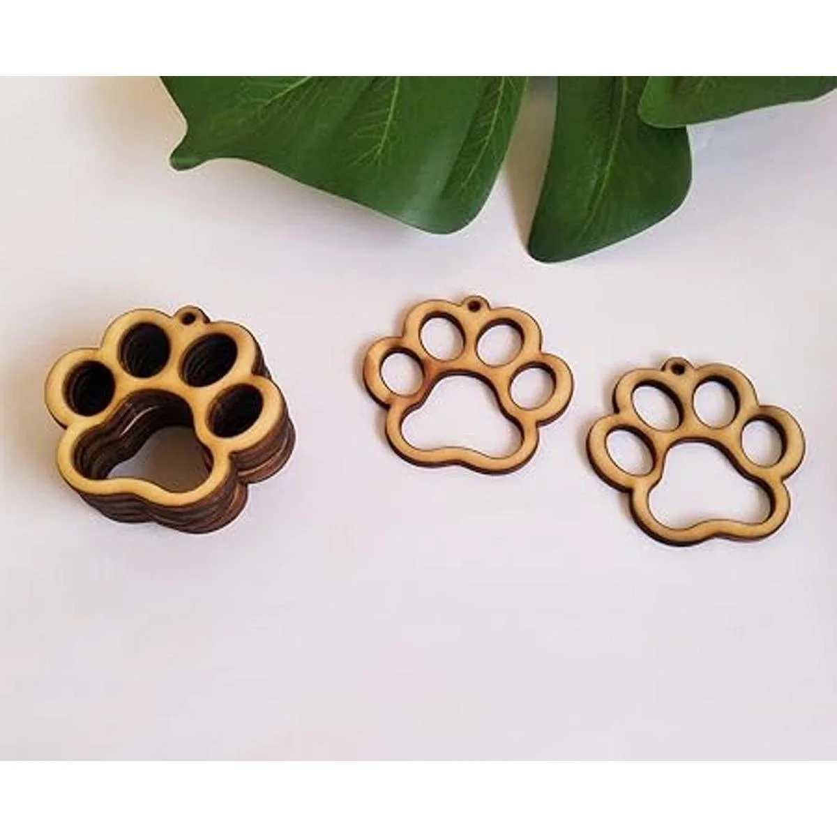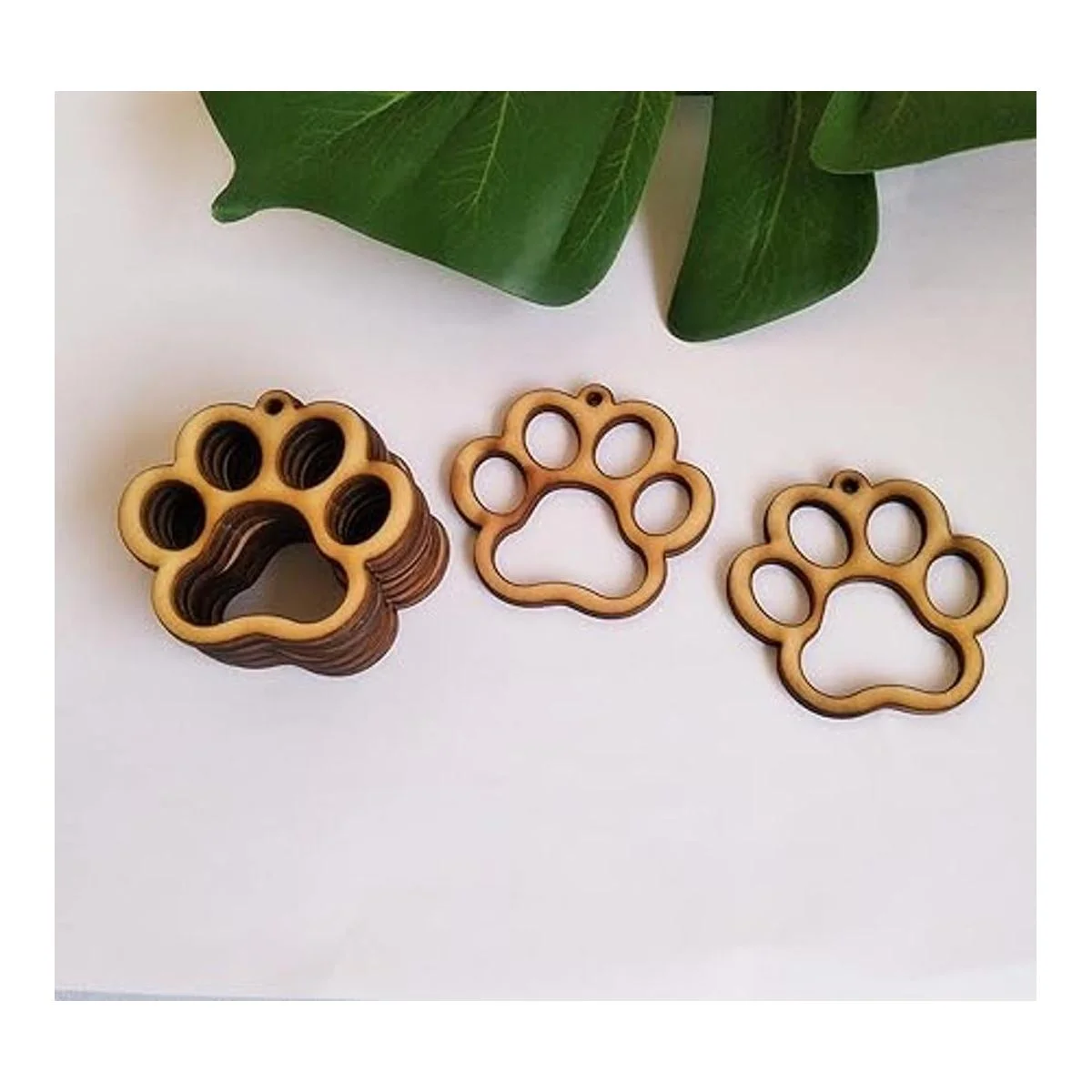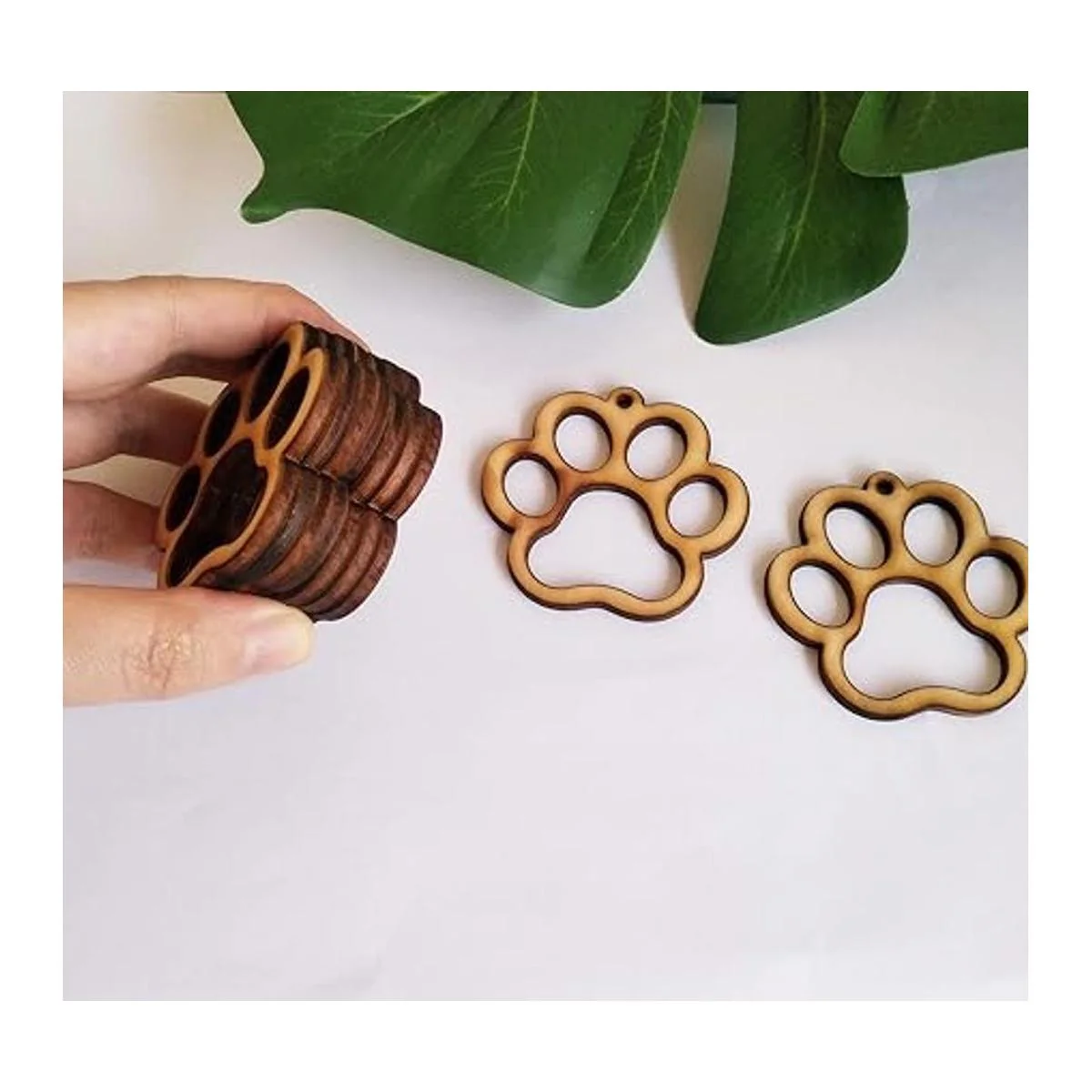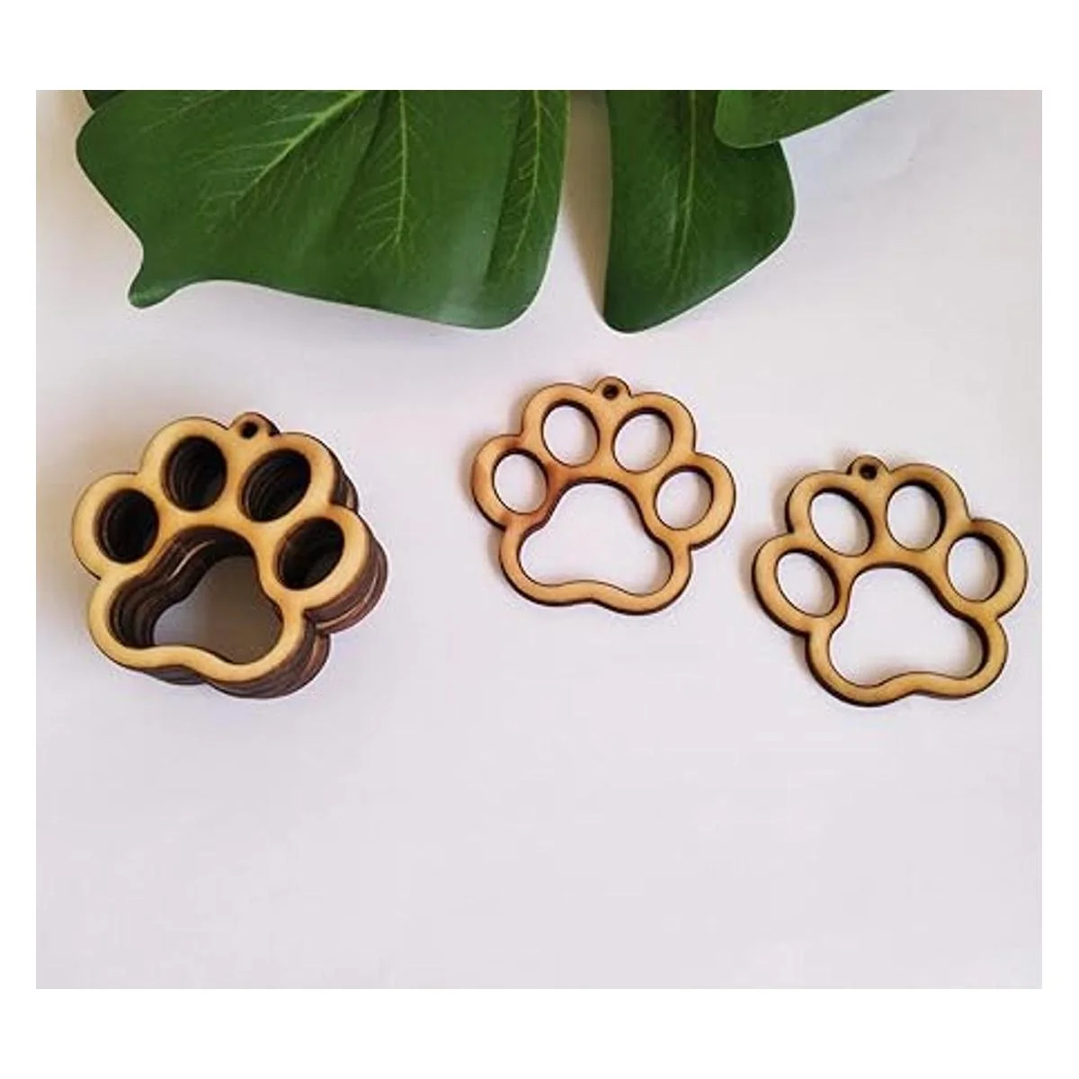 30 pendientes de madera sin terminar con estampado de pata de perro, diseño de pata de tigre para hacer joyas, manualidades, proyectos de bricolaje de madera, pendientes colgantes de joyería en blanco 1.5 in