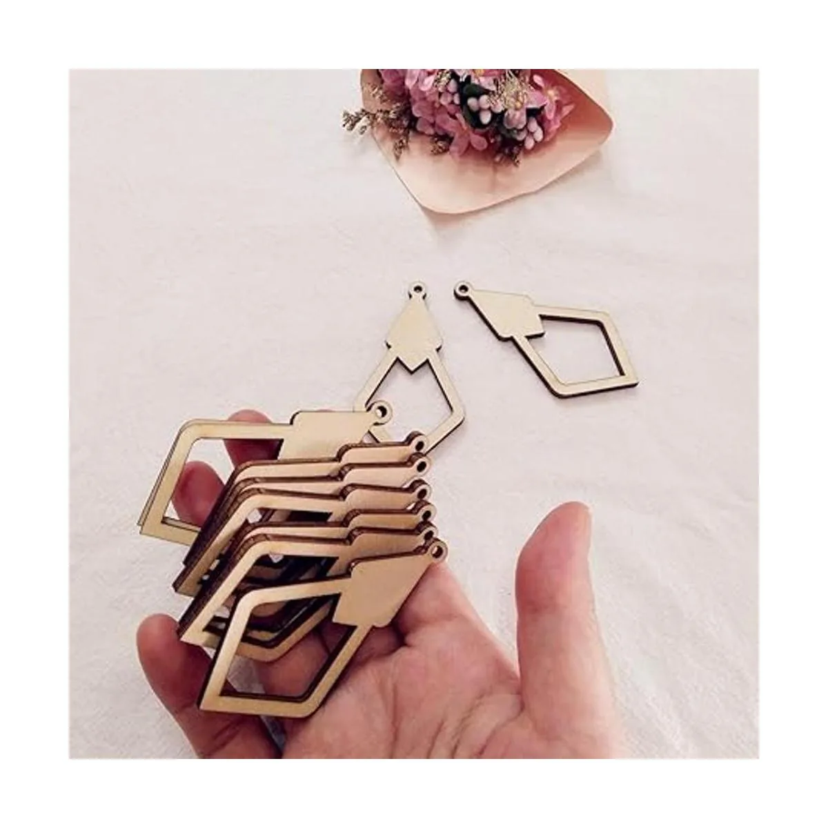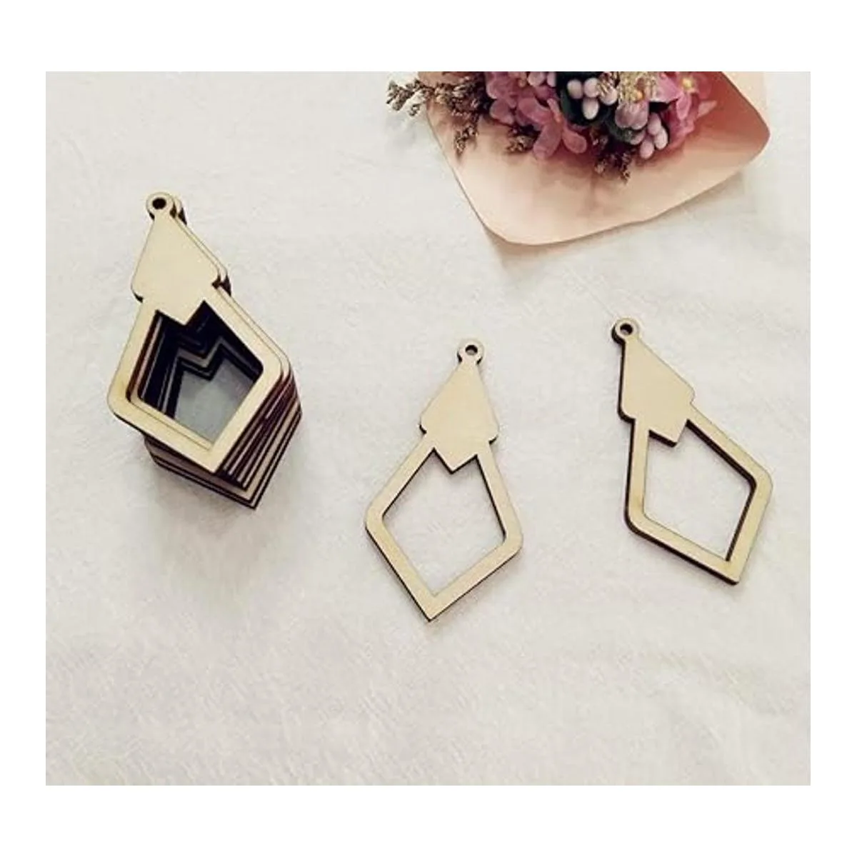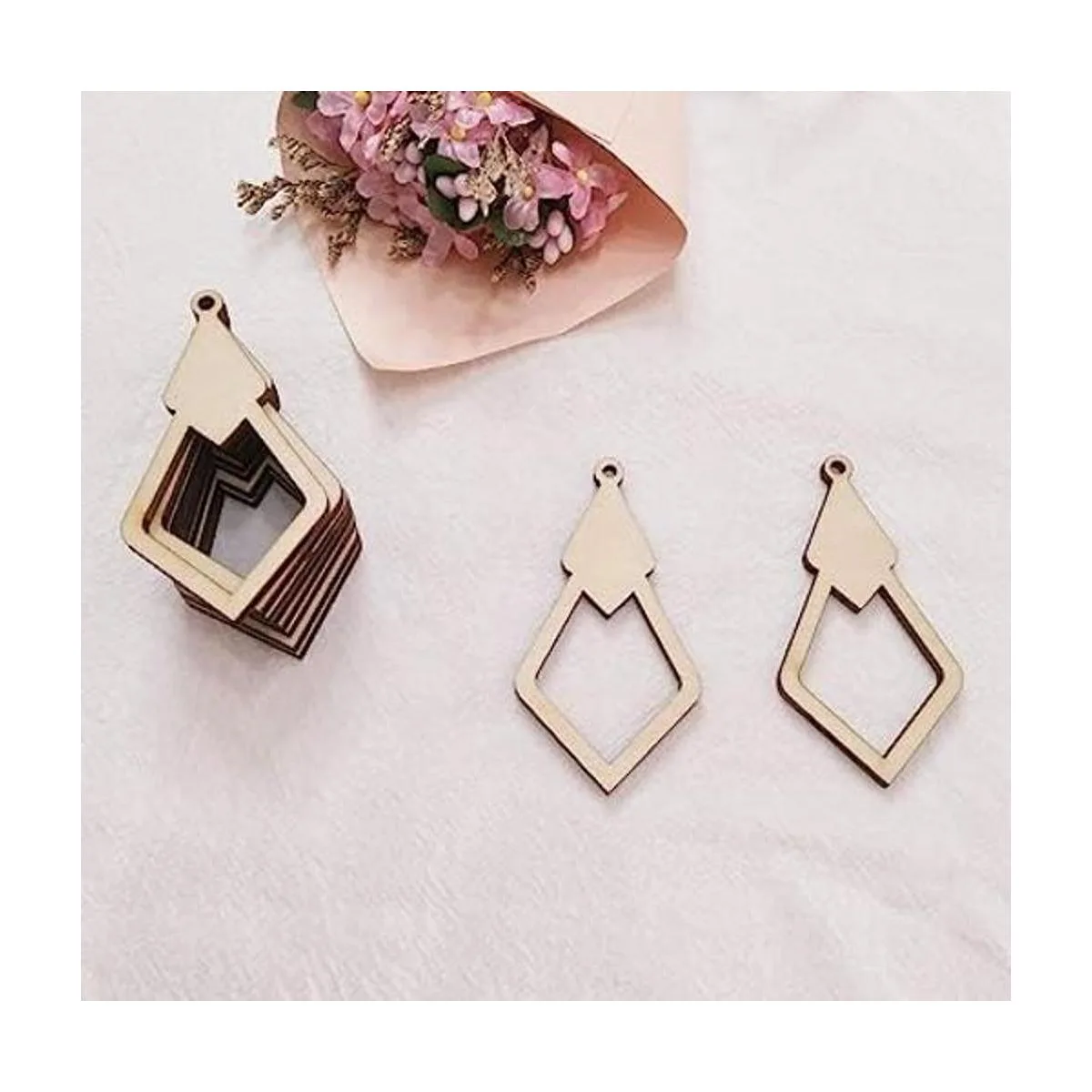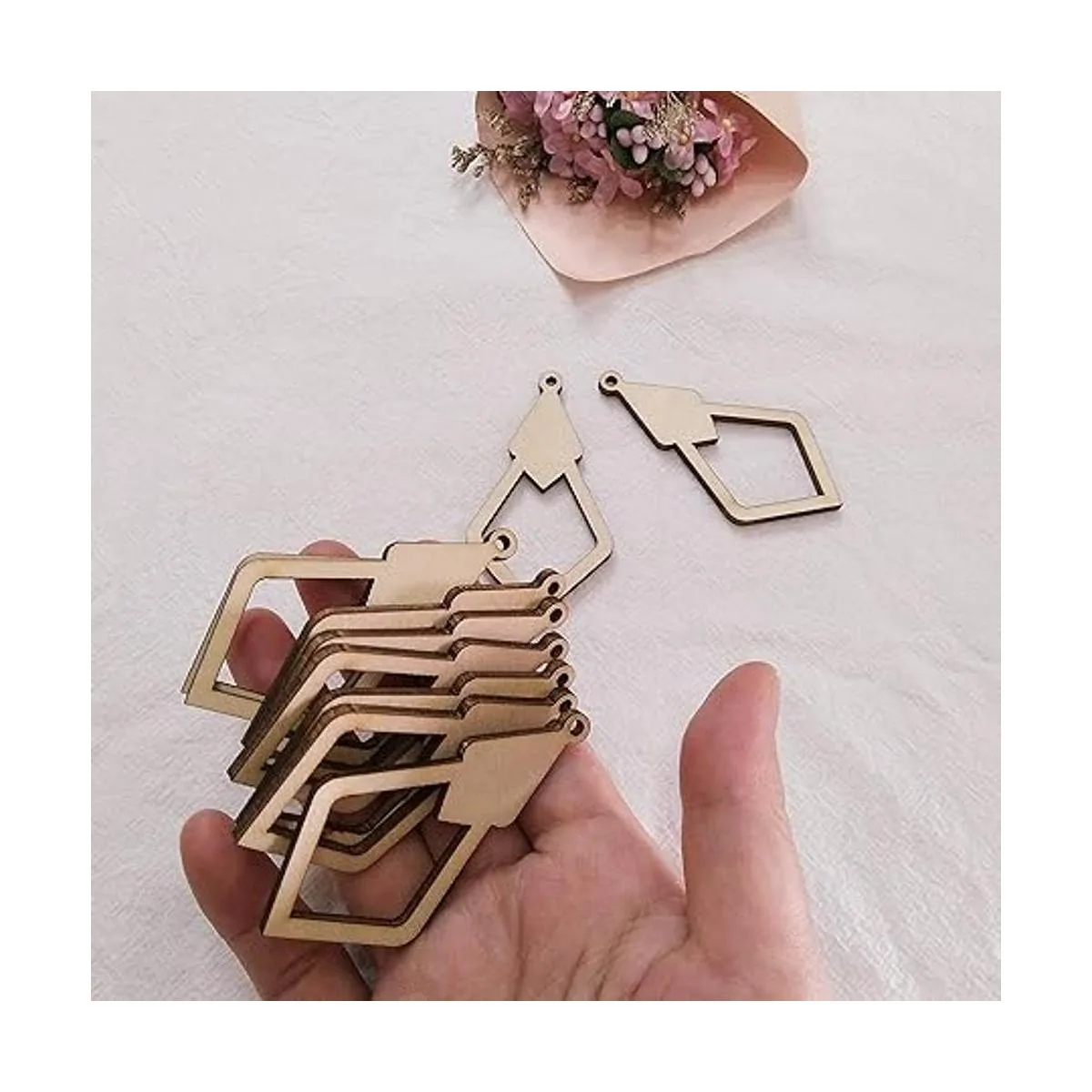 30 pendientes de madera sin terminar con forma de diamante hueco doble, sin terminar con láser, joyería de madera, formas de madera (2.5 in).