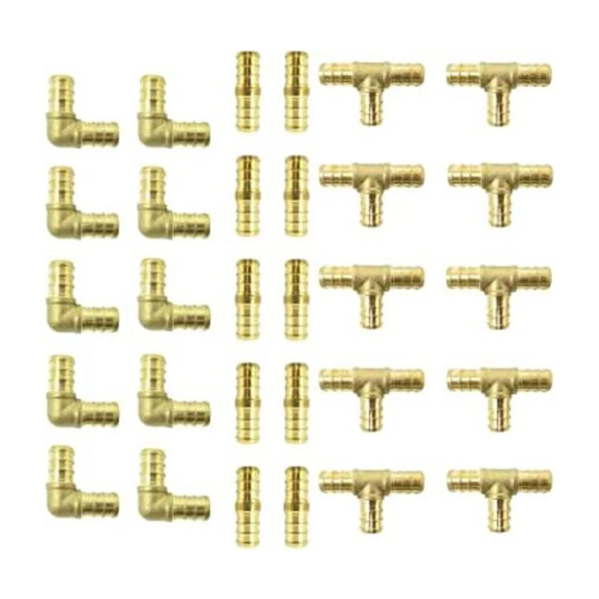 30 piezas accesorios PEX de latón de 12 pulgada para tubería PEX de 12 pulgada 10 codos, 10 TEE, 10 acopladoresrectos Kit para agua doméstica y calefacción radiante, sistema de enganche de latón sin plomo y sistema PEX GUY
