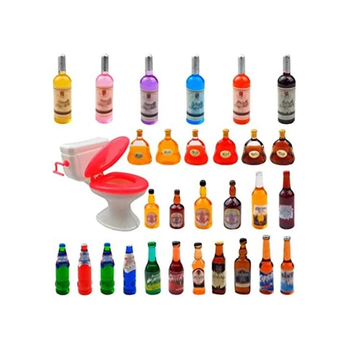 30 piezas de 29 estilos de mini botellas de vino con 1 juguete de inodoro en miniatura de plástico, divertido juego de regalo para decoración de fiesta de cumpleaños, despedida de soltera