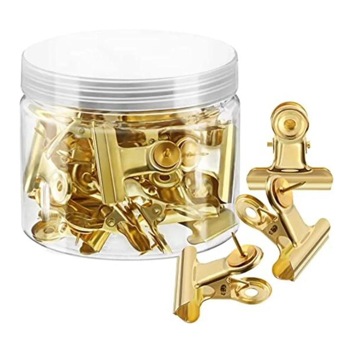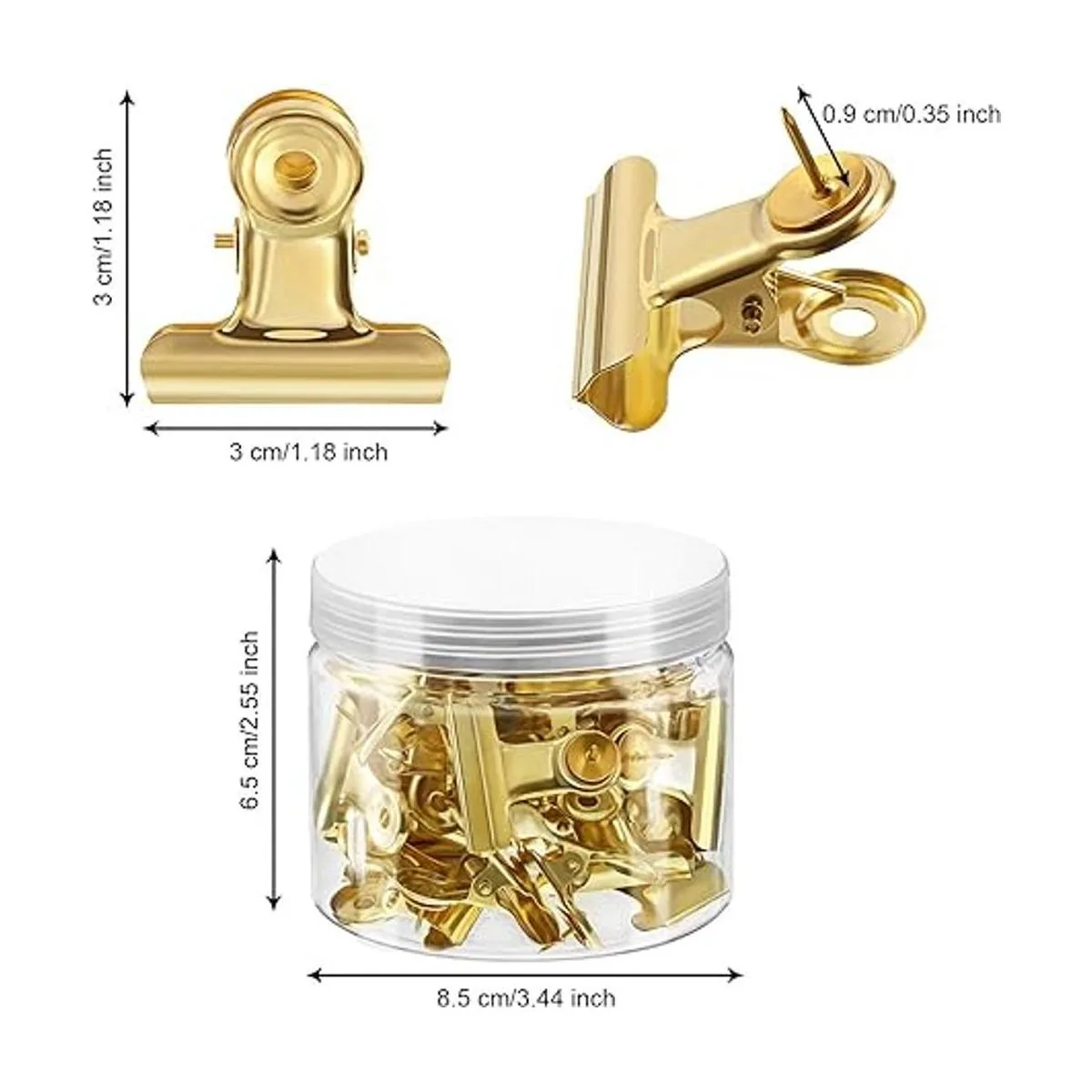 30 piezas de alfileres de pulgar con clips, tachuelas de corcho para tablero de bulldog para obras de arte escolares, proyectos en tablero de corcho, documentos de fotos en tablón de anuncios, sin agujeros para el papel dorado